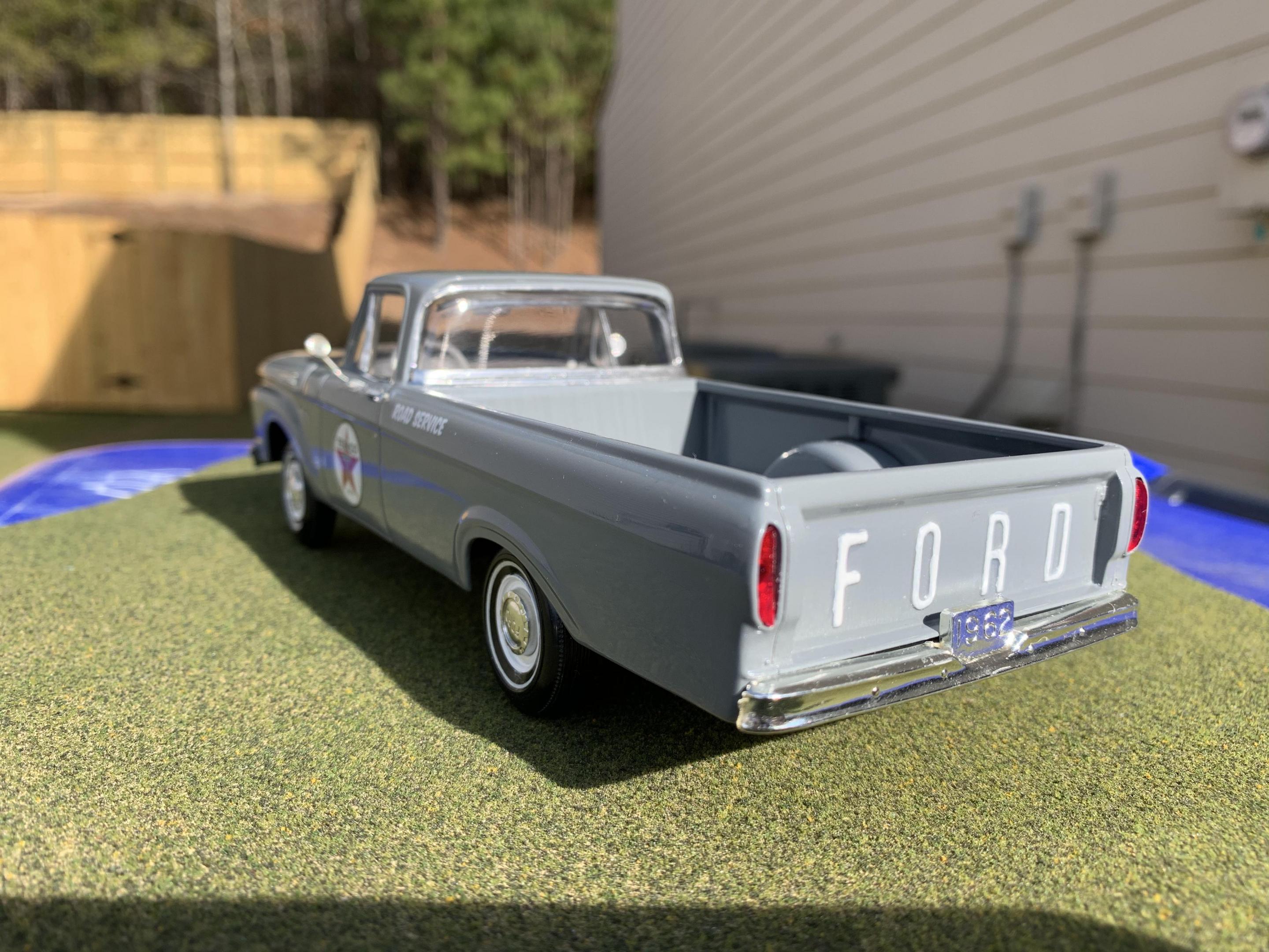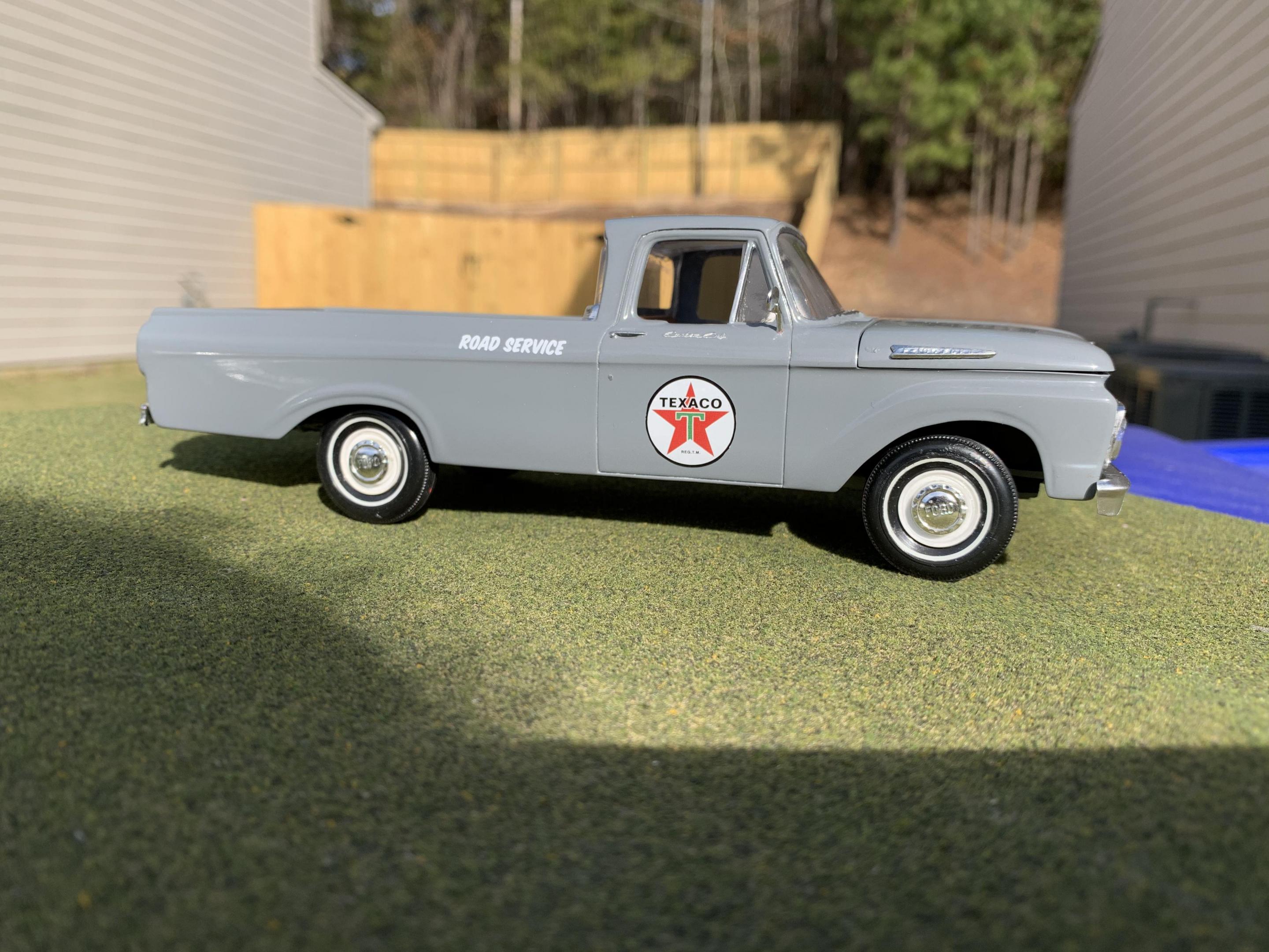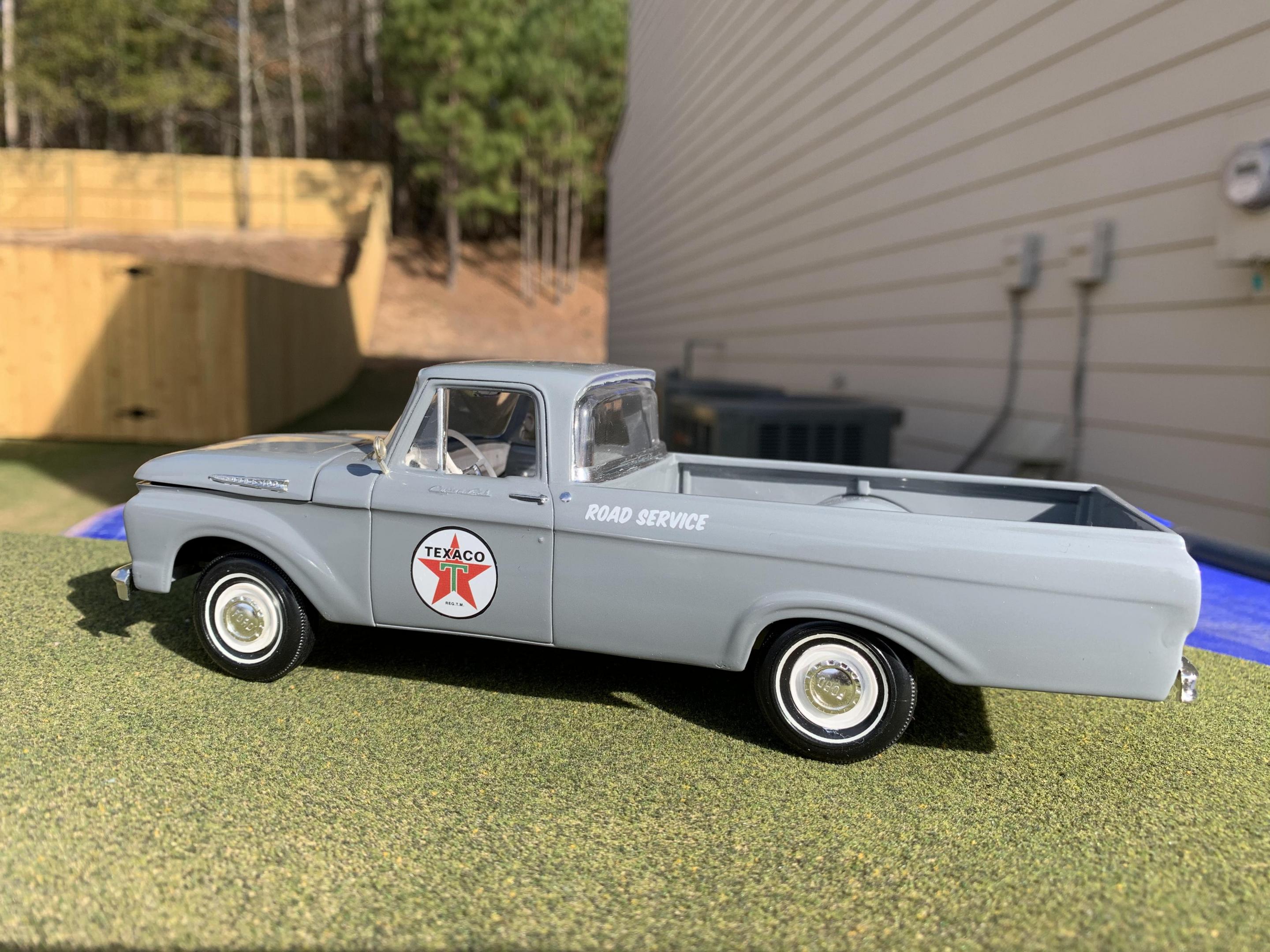 1. I had this posted in WIP, and it was suggested since I had finished it that I needed to post it here as well. I hope to build a Texaco Gas station diorama one day and this would be the stations service truck for it. The kit is an AMT/ SMP that came with a trailer, built pretty much box stock, painted gray. I already have several trucks of the normal truck colors, and I thought the gray was a nice change. A little details in the interior. Comments always welcome good or bad.