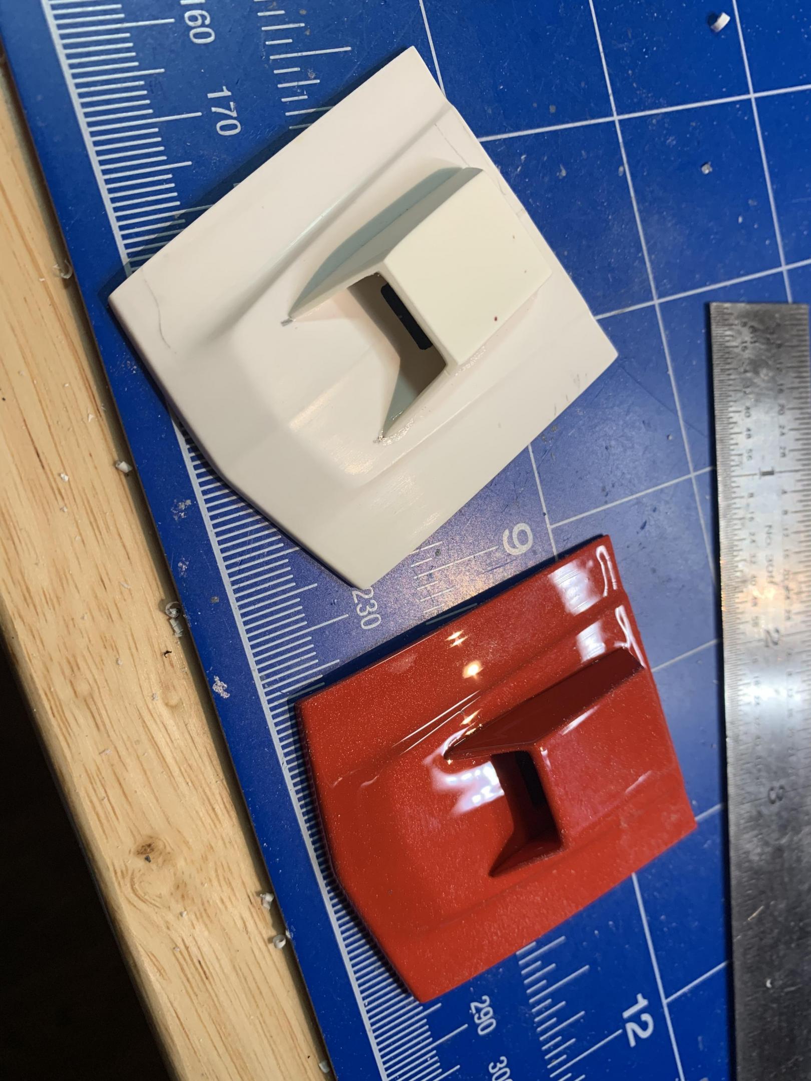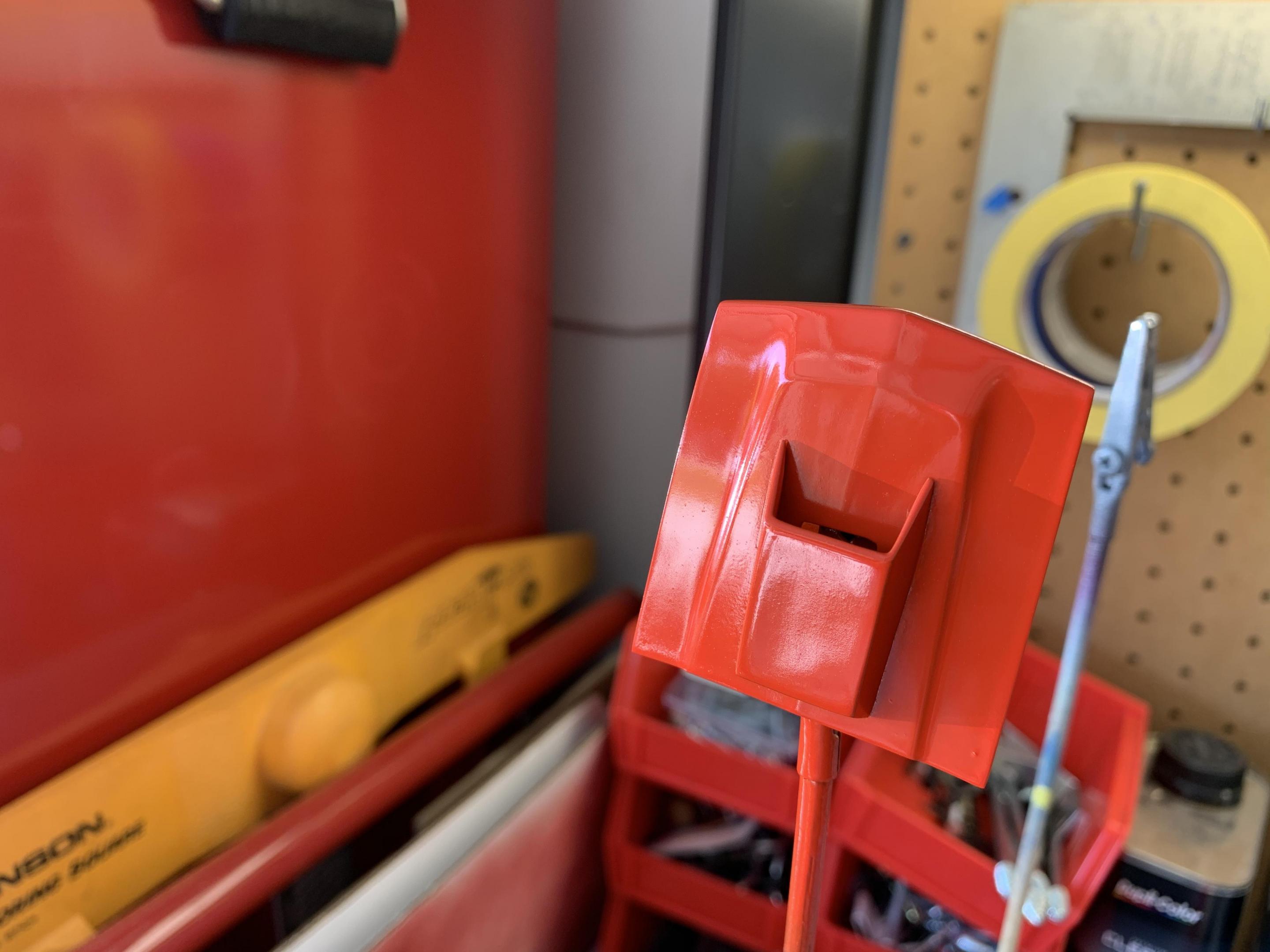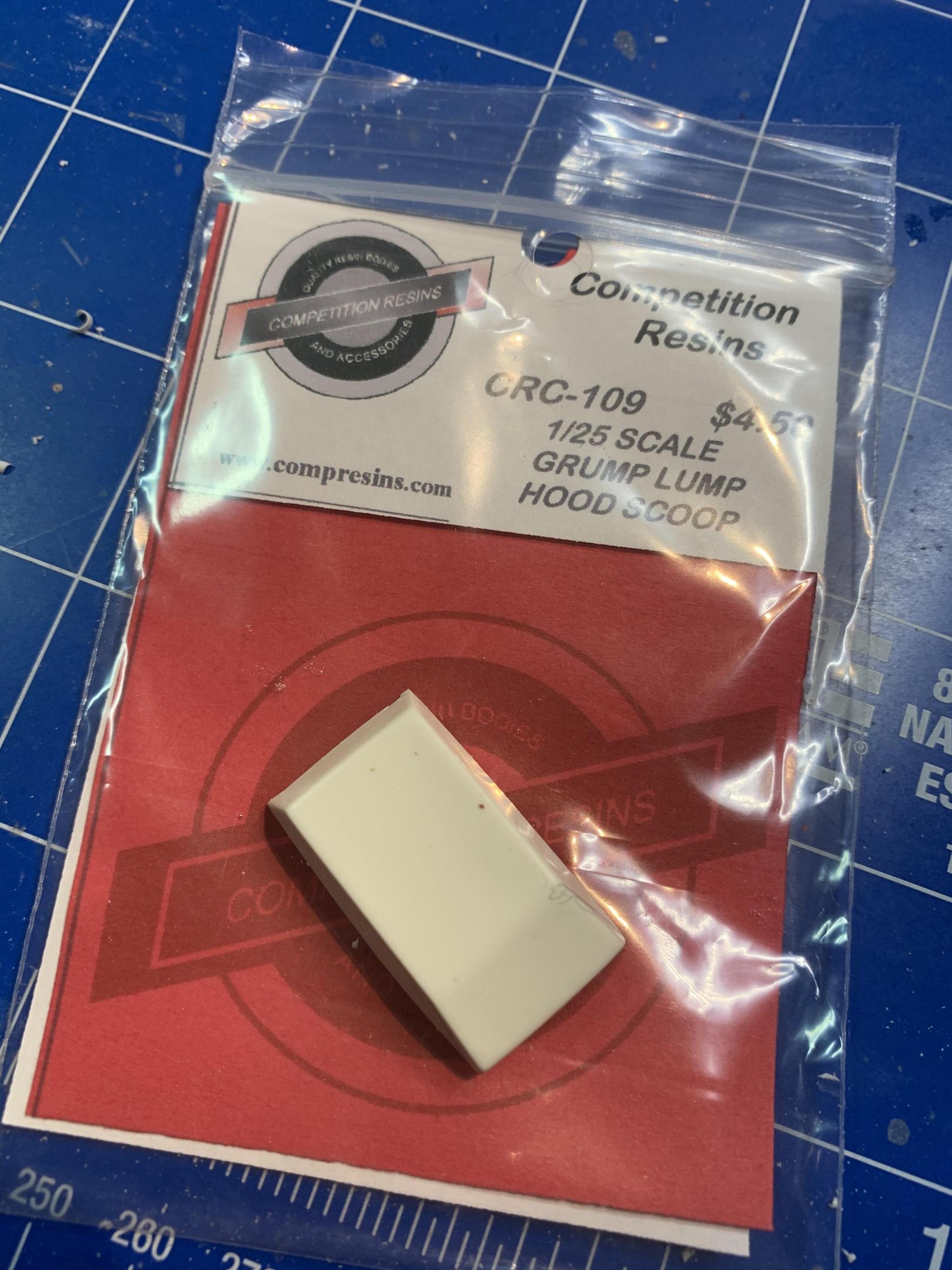 4. So I had a spare hood and a second resin Grumpys toy hood scoop, And I was hold trying to get parts prices, and I thought I could put a second hood together quicker than waiting for the paint to strip, and if I had a second problem I could decide which hood was best and live with it. So once hobbled together, I primed it with the same primer and then sprayed it with the same rattle can, and no metallic this time. I then cleared it and I’m good to go.