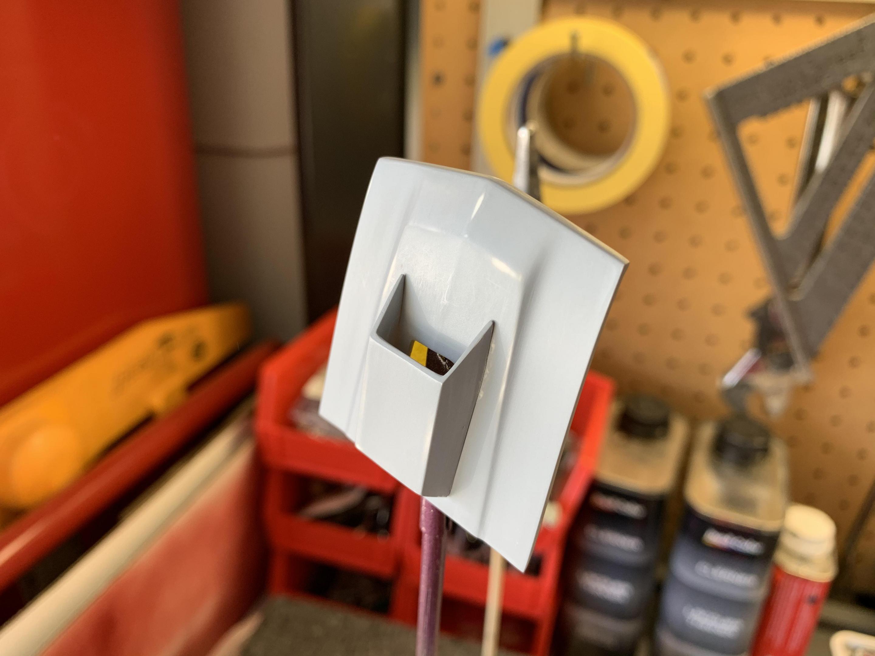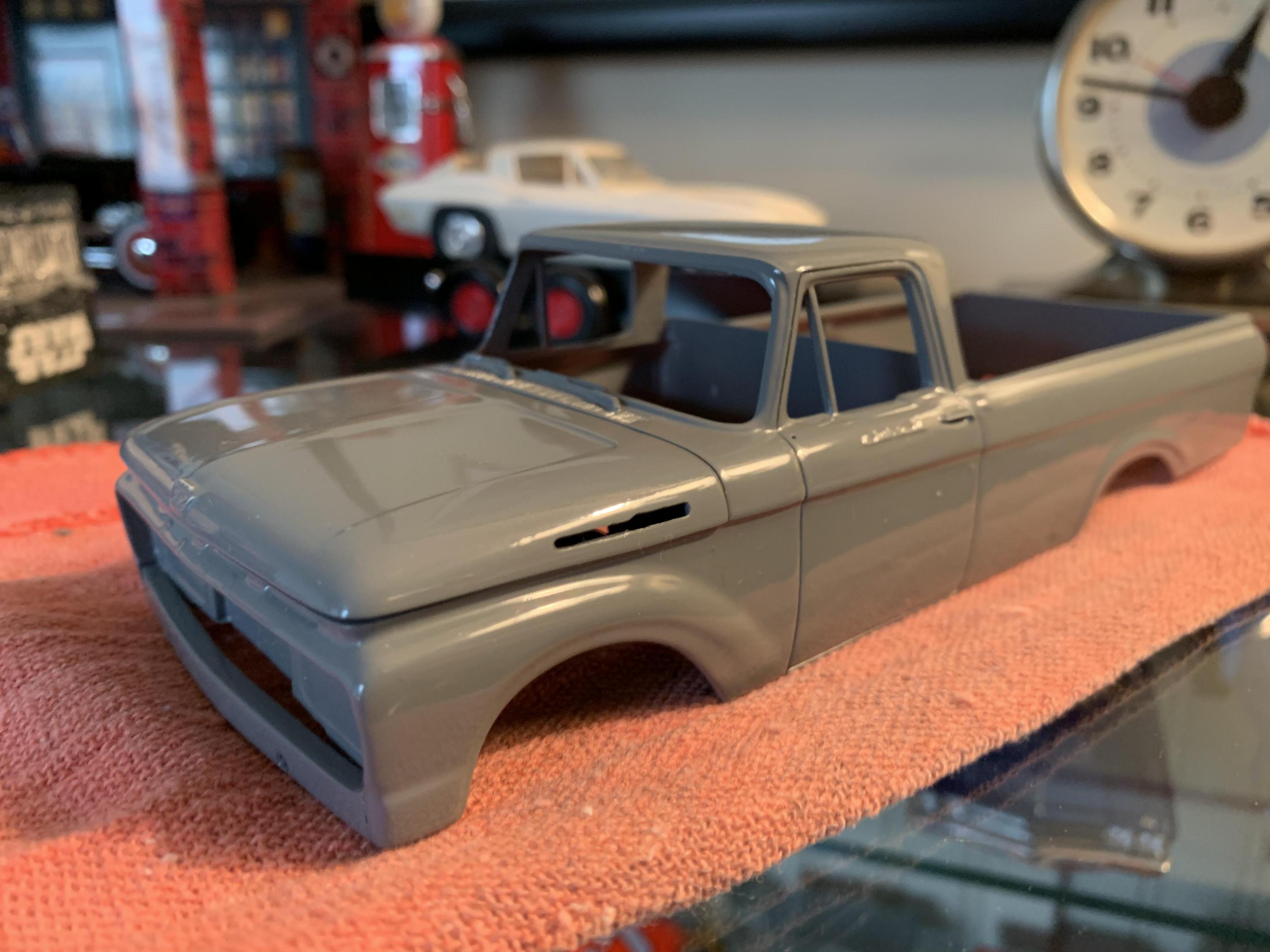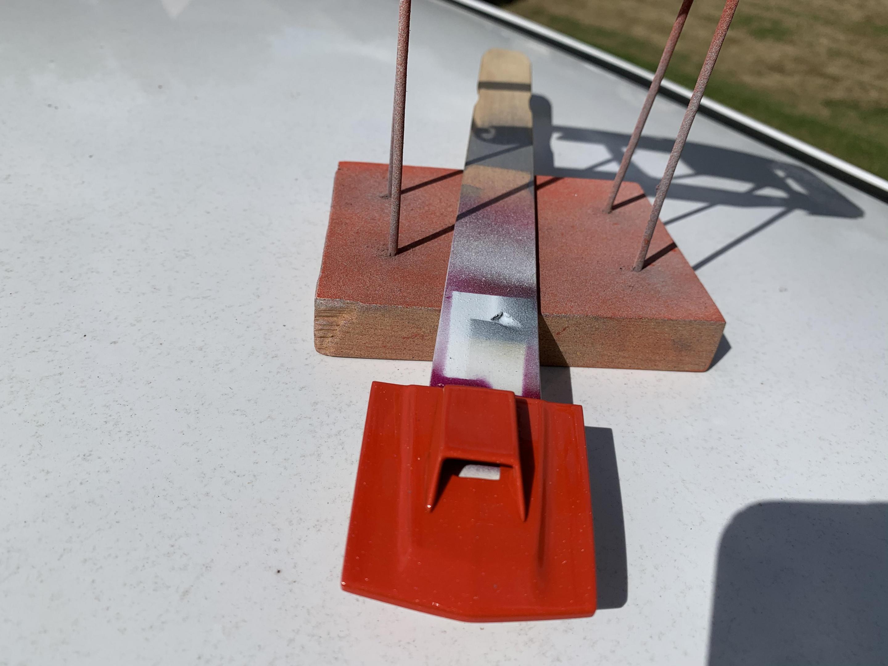 4. So I had a spare hood and a second resin Grumpys toy hood scoop, And I was hold trying to get parts prices, and I thought I could put a second hood together quicker than waiting for the paint to strip, and if I had a second problem I could decide which hood was best and live with it. So once hobbled together, I primed it with the same primer and then sprayed it with the same rattle can, and no metallic this time. I then cleared it and I’m good to go.