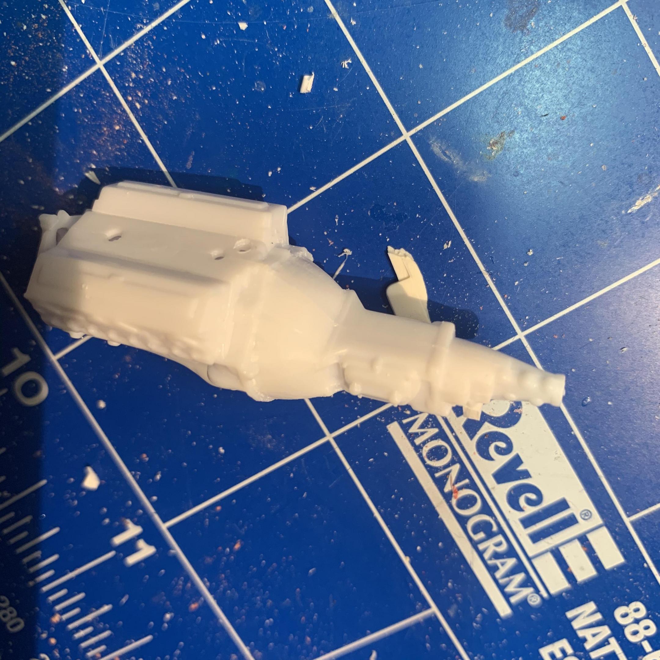 19. Small update, when I held the rear bumper in place there were large gaps, so I m filling those. I’m really close to having the firewall ready, and I removed the ribs in the transmission bell housing so it looks more like a scatter shield. Paint it red and put a Lakewood decal on it and it should be good to go.