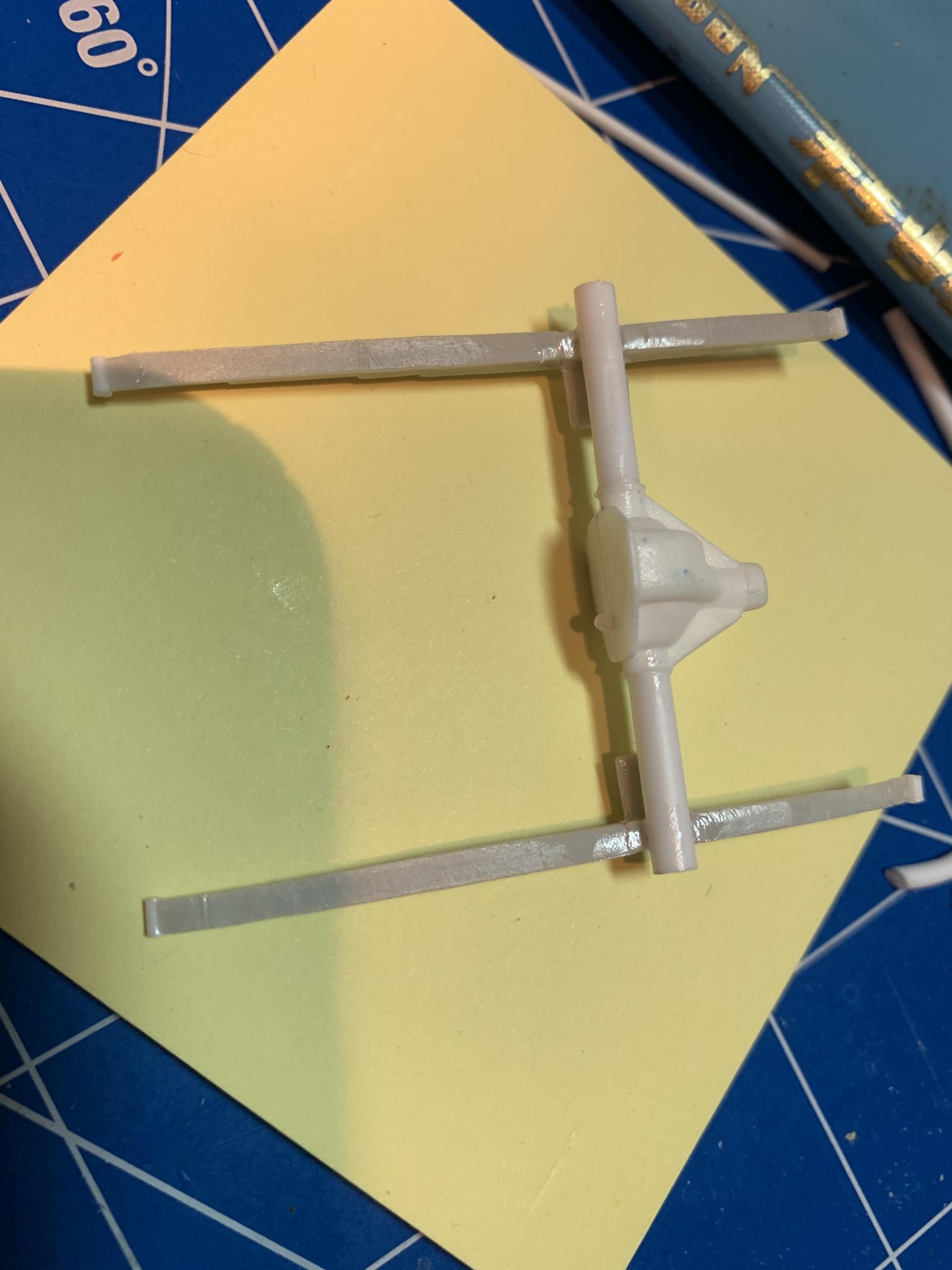 Small update: The company I work for thought we weren’t doing enough work, as I normally work in the field and drive time is considered, and added more daily assignments and closed another department completely and gave us that work to do.There short sided thinking has resulted in more work than I can complete in a day as we’re returning to field work, so I’ve not had much time to work on the Duster. I did manage to get the rear axle built. I started with the Dana from the 70 Coronet Kit, I narrowed the axle tubes too much the first time and ended up cutting them completely off and scratch built axle tube with Plastruct tubing. I used the kit leaf springs and mounted them to the rear frame rails as my reference photos showed. I notched the front of the rails to get the ride height correct and formed spring eye hangers.