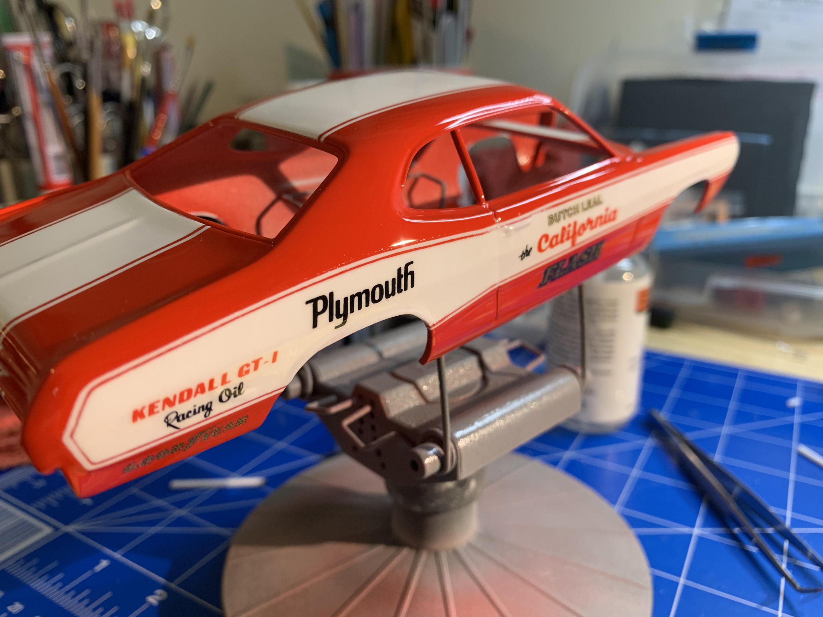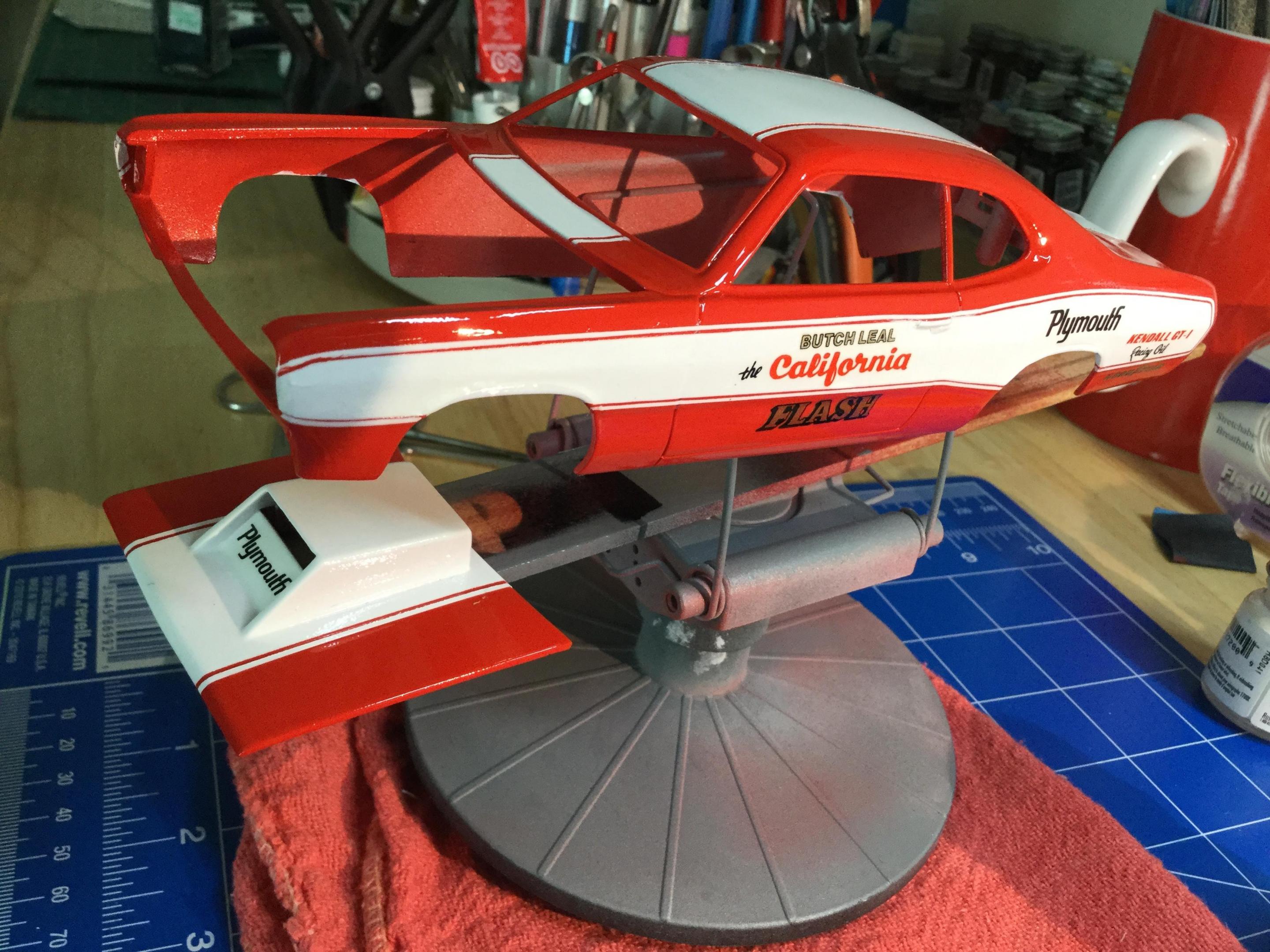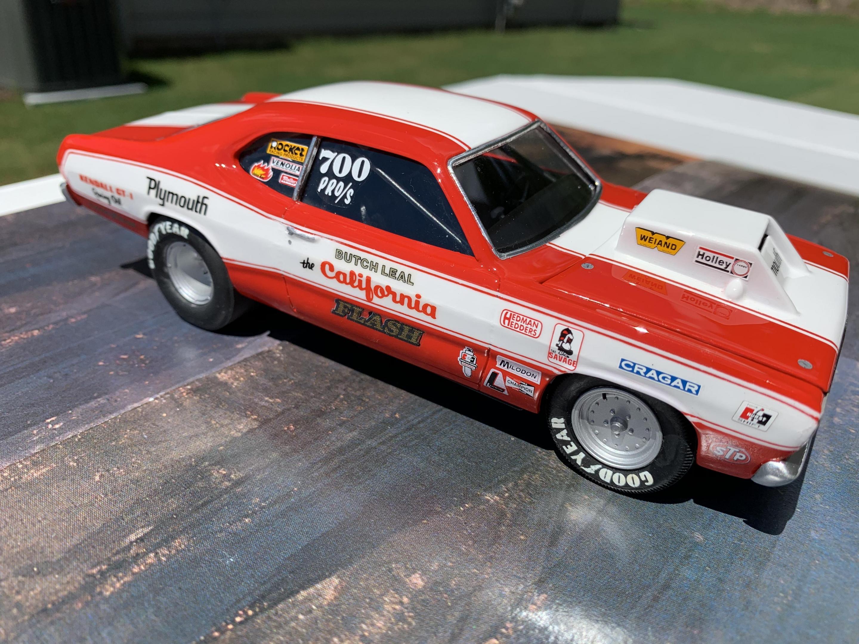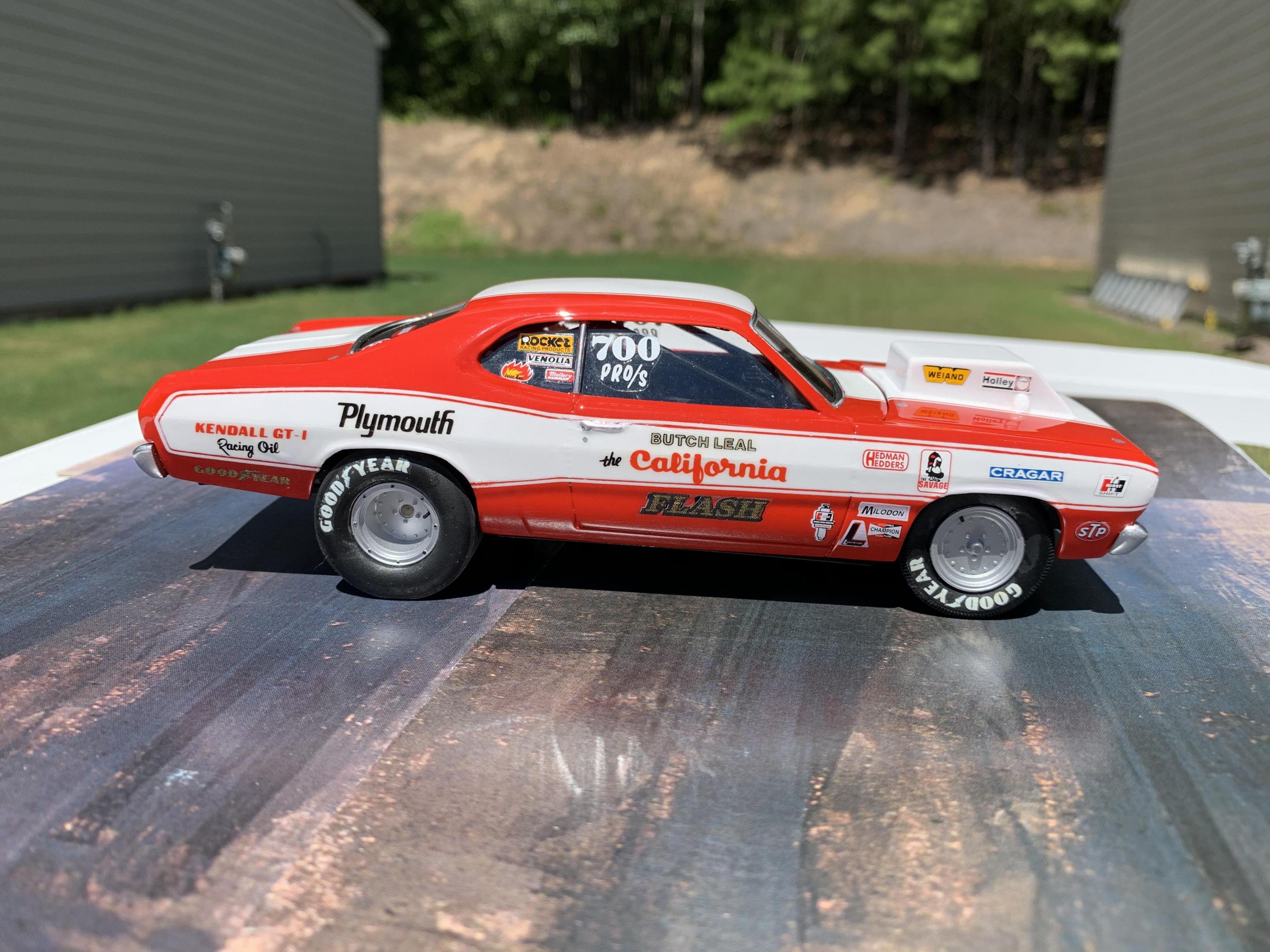 One of my Holy Grail builds here. I’m not even sure how I feel about the finished build. Usually by the time I’m close to being finished, I just want it over. I’ve been a couple months on the build and in all honesty it will be a few weeks before I will appreciate the time and work involved. Most of the research I found centered around the 71 Duster, and not the 72, so some liberties were taken in the completion of the build. The original MPC kit while so cool when it came out, left a lot to be desired. I wanted to keep the build as much as original to the kit, but I had to do major work on almost every part. If I had it to do over I would paint all the stripes, and use the Revell Hemi Dart kit for everything else. Questions, comments, and even criticism welcome.