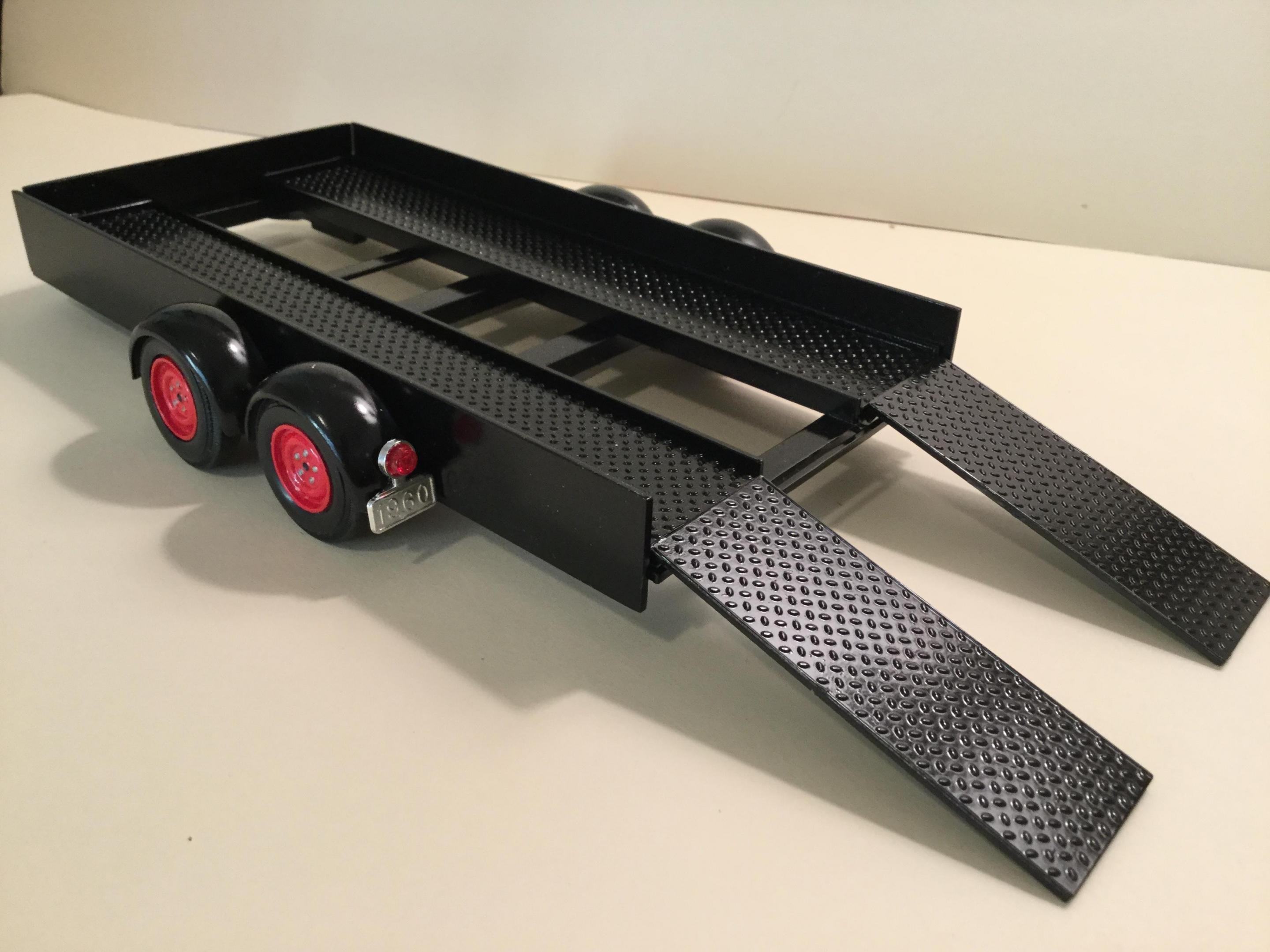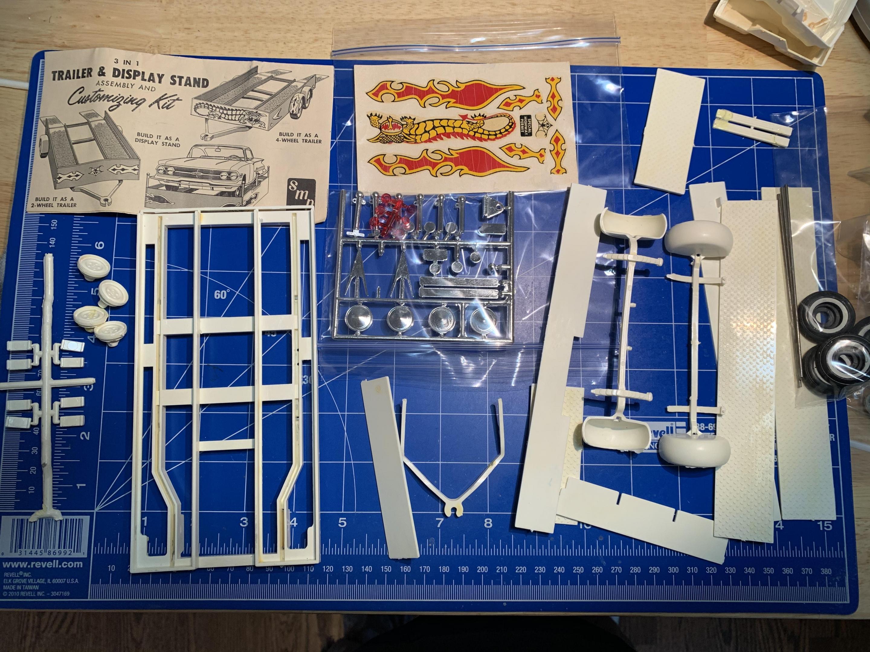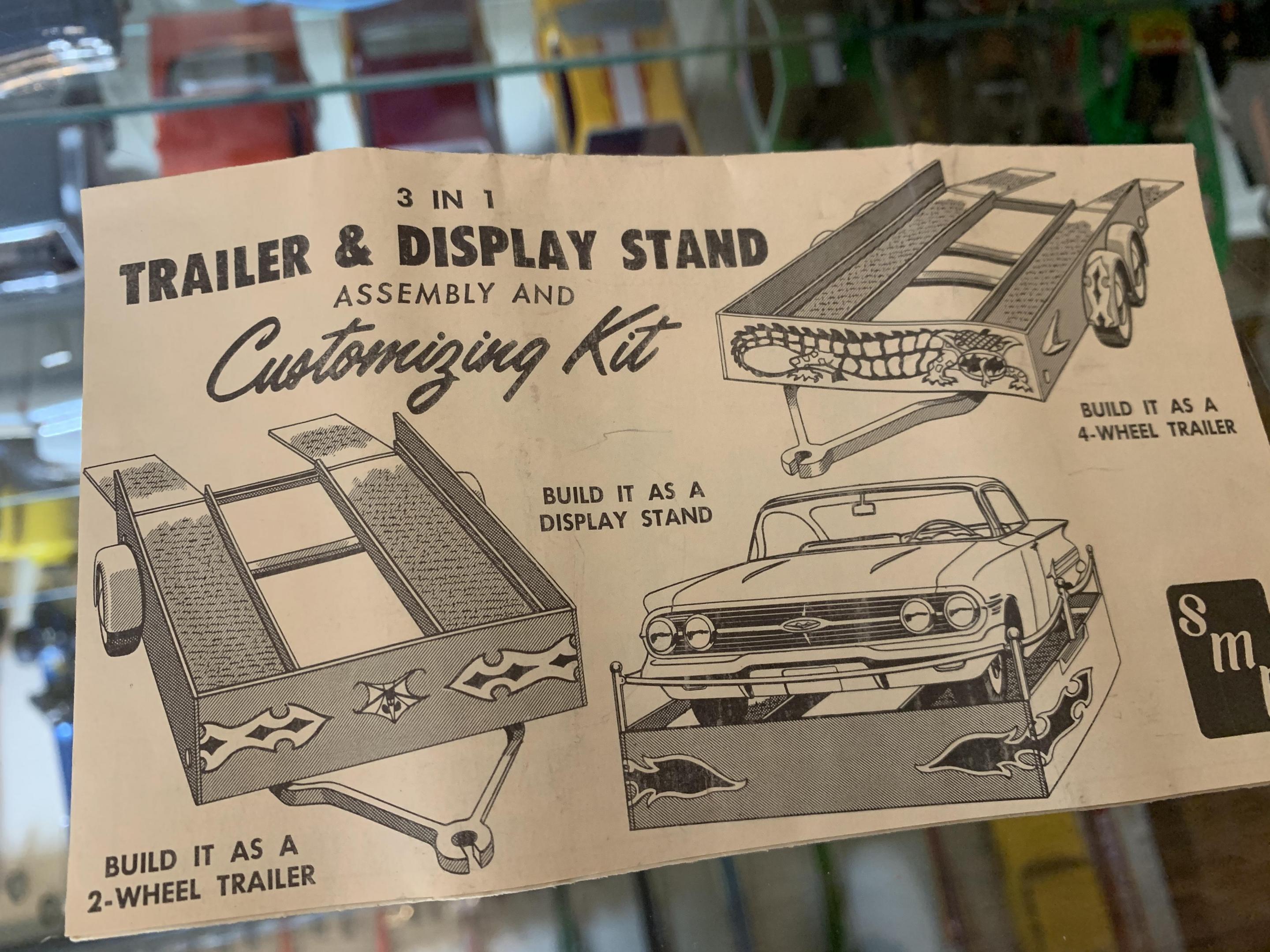 I had no idea of what category this would fall into while I was building it, so I decided to put it under glass when it was finished. If you’ve read my last couple of posts, you’ll understand I’ve been saving all these great kits to build “some day”. I’m a builder, not a collector! After a recent hand injury, turning 63, and accumulating more aches and pains that I won’t get into, I’m building this stuff before I can’t do it any longer. Several years ago, I purchase a model car collection from an old man. There were several built, partially built and unbuilt kits. Nothing newer than 1962. This trailer was part of that collection and I believe it came with the SMP 60 Ford pick up that I have. The truck is built as a mild custom, there was no box, so I’m not a hundred percent sure. I have never seen a more complete trailer kit though. I built this to go with my 62 Ford Galaxie drag car, and a soon to be built 62 Ford pick up from the same collection. The axles were bent and I heated and straightened them with heat. I mixed Gloss black and semi gloss black as I didn’t want it too shiny as trailers aren’t usually very shiny. I didn’t put all the trim and marker lights on the kit as I wanted it a little simpler. The decals were cool, but there toast. Hope you enjoy, comments and suggestions always welcome.