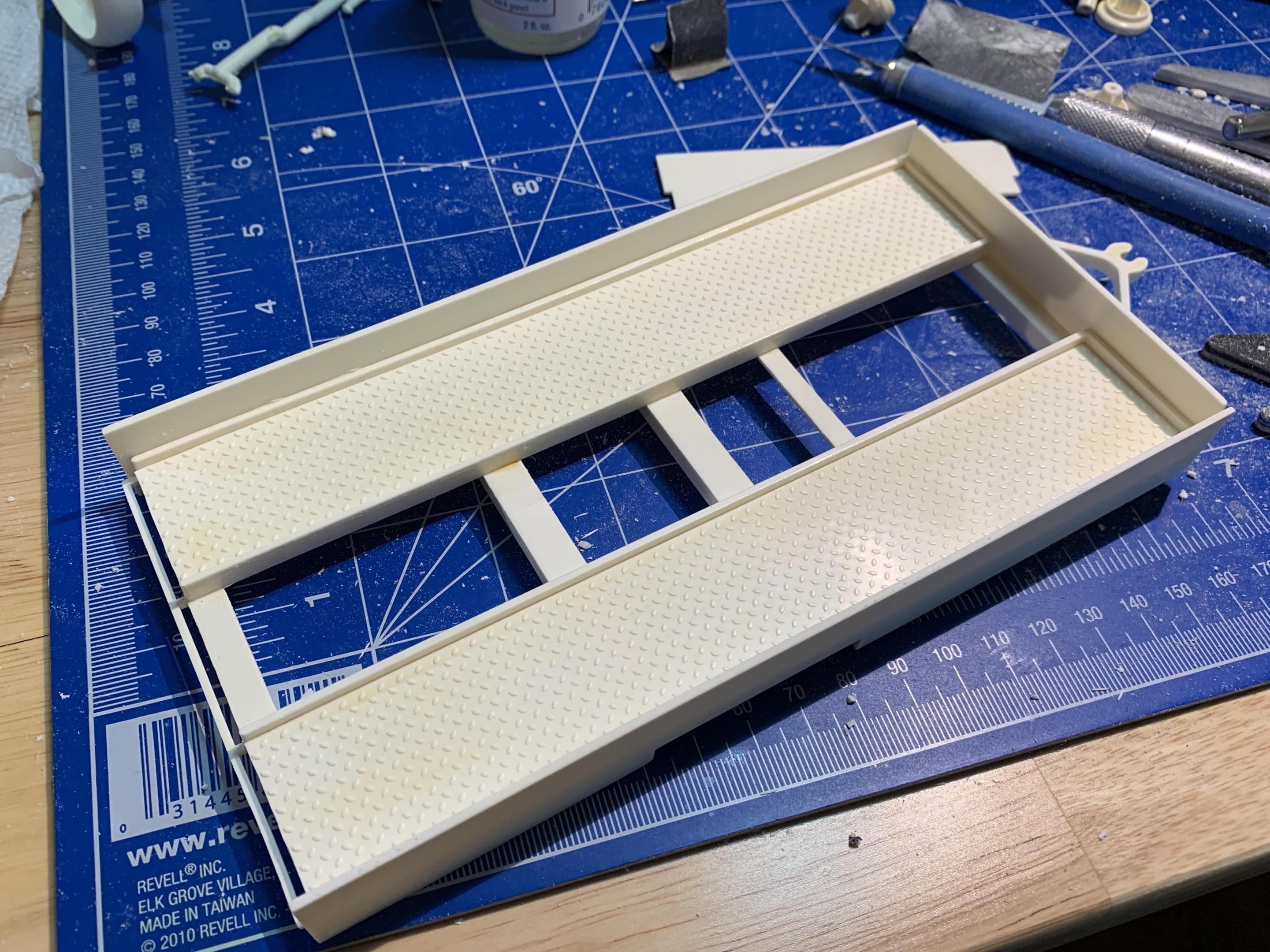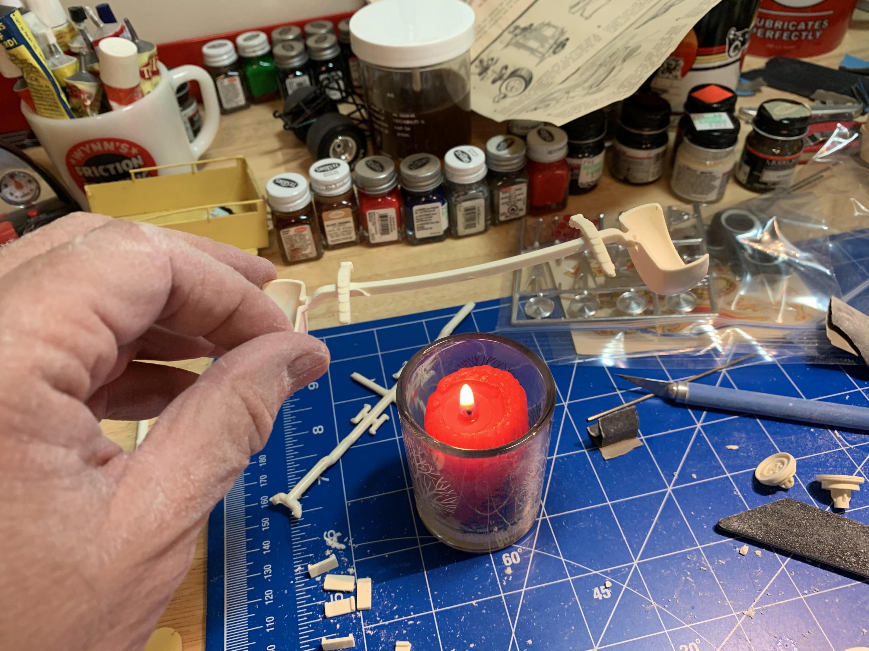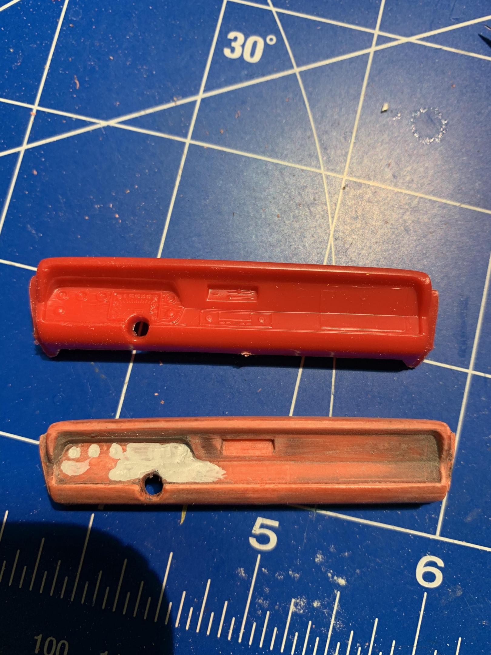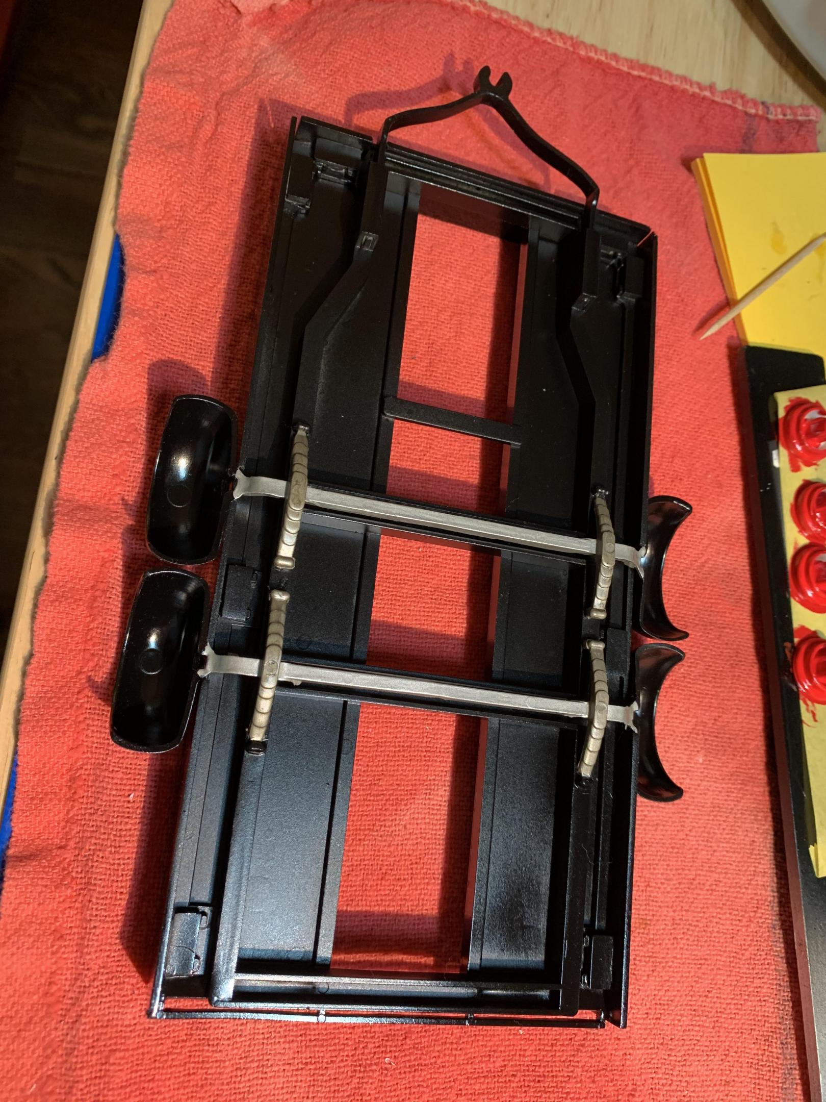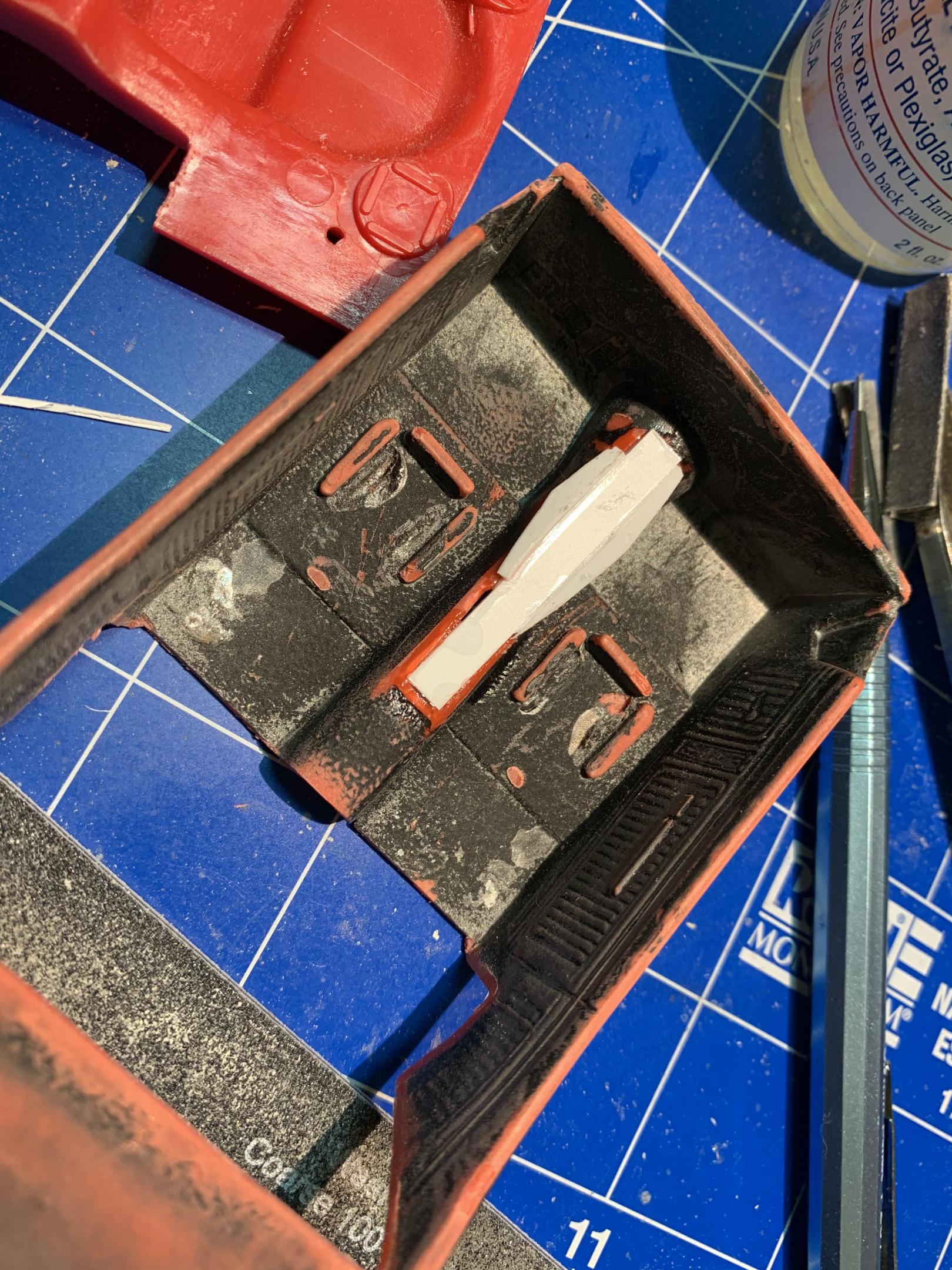 The 72 car had Cragar Trick wheels, the kit came with the 71 Fenton wheels, I struggled with this as I wanted the originality of the kit to remain intact. I only had the kits rear wheels, so I opted to go with the Tricks. I returned to getting the car to sit right and the wheel falls right between the original mount holes so I’m filling them and will drill new holes for the front wheels.