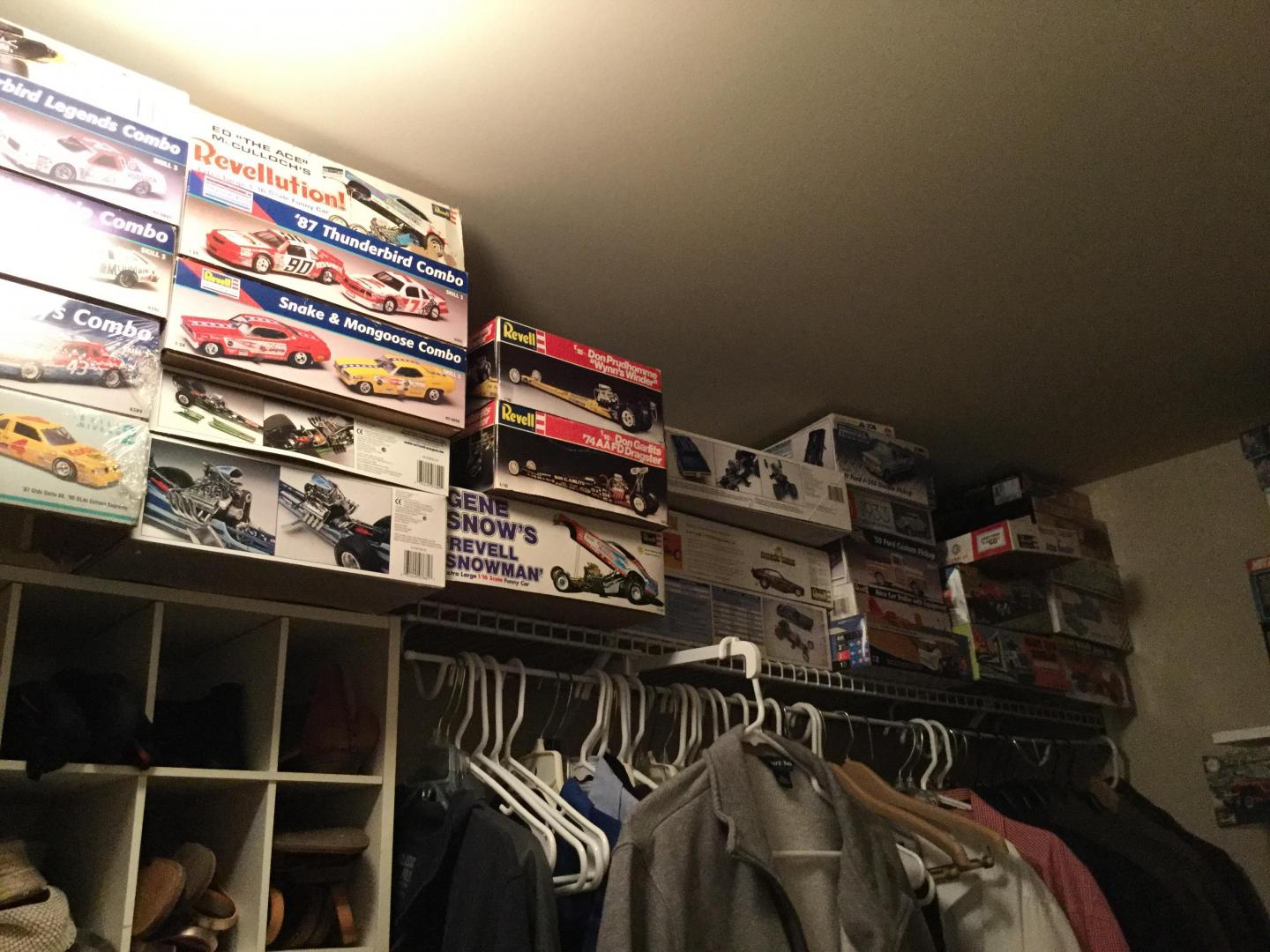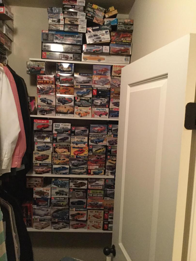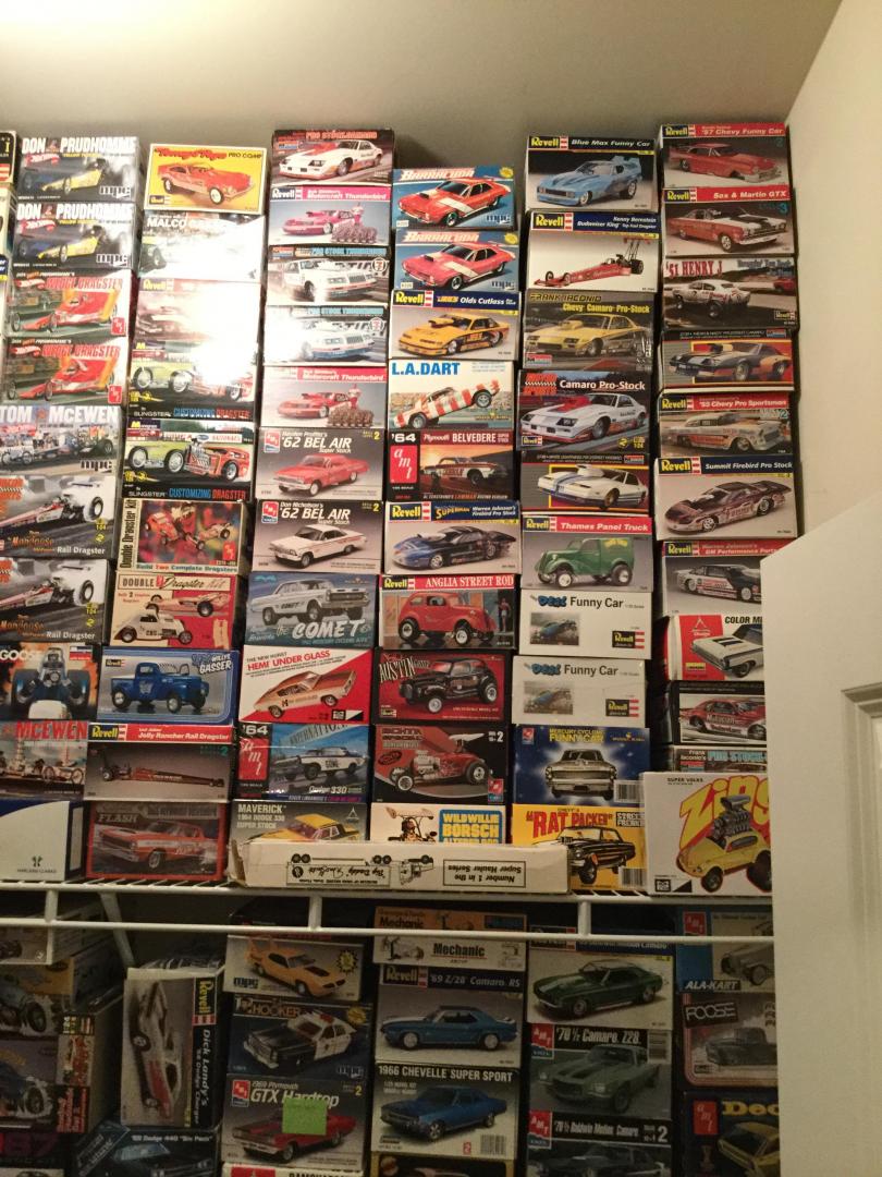 Sold off about 50 Kits at the NNL Southern Nationals event last week, sold a couple hundred kits off two years ago. I still have more than I can build in a life time, but I’m gonna give it a good try! I have a spare bedroom that doubles as my office. The closet is full, I have a shelf in the office that I display a lot of older stuff, and I have the overflow in my clothes closet, and about 80 kits still boxed up from the sale last week. My wife is very understanding, God Bless her! -