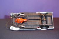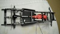 The engine fit right in no problem - the trap door came from another stock car book. It was actually from another later model year car-- I just thought it would be cool on this one. The actual door in the real car had a rope and a spring loaded deal (lanyard) so the driver could pull the rope, check out the tire, let go of the rope and the door slams shut. Nice. I painted the flat black on the frame and other parts and rubbed graphite on them to give them the metal look.