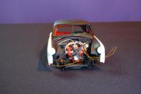 Got the idea for this one from a vintage Stock Car book with the Rocket 88 pictured in it. This kit was built before the new Olds release. The Chevy has flared rear wells , solder headers, scratchbuilt seat , a trap door to look at the front right tire from inside the car