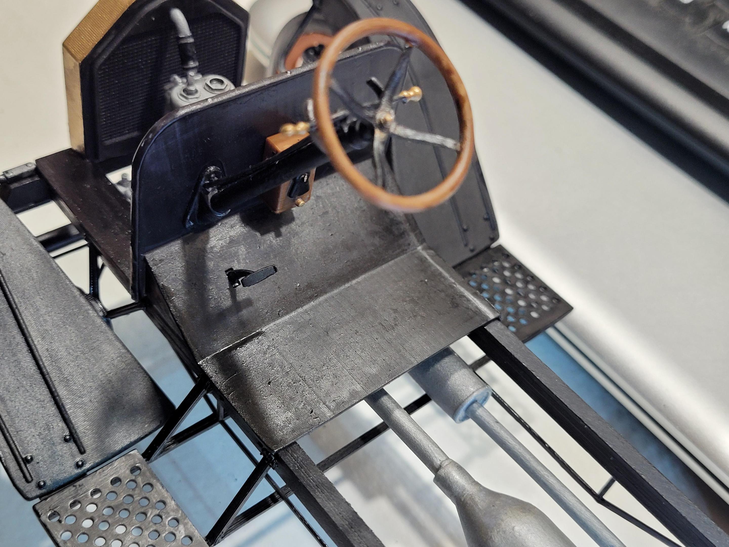 Just for the heck of it, I painted whitewalls on the kit tires. While they would look good on a 30's or 40's car, they really don't work here. The rims are also too wide. So now I will be printing both tires and wheels!