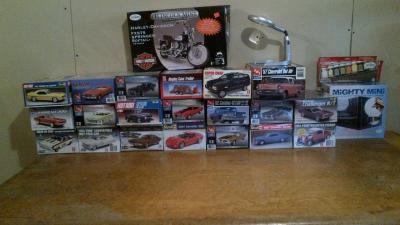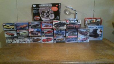 Good morning, I will be 62 next month, and haven't built a model since I was around 28. I figured it was time to get back at it, so here is a picture of my work desk with the models I have accumulated over the last while. Hopefully I will have work in progress pictures to upload shortly. Wish me luck.