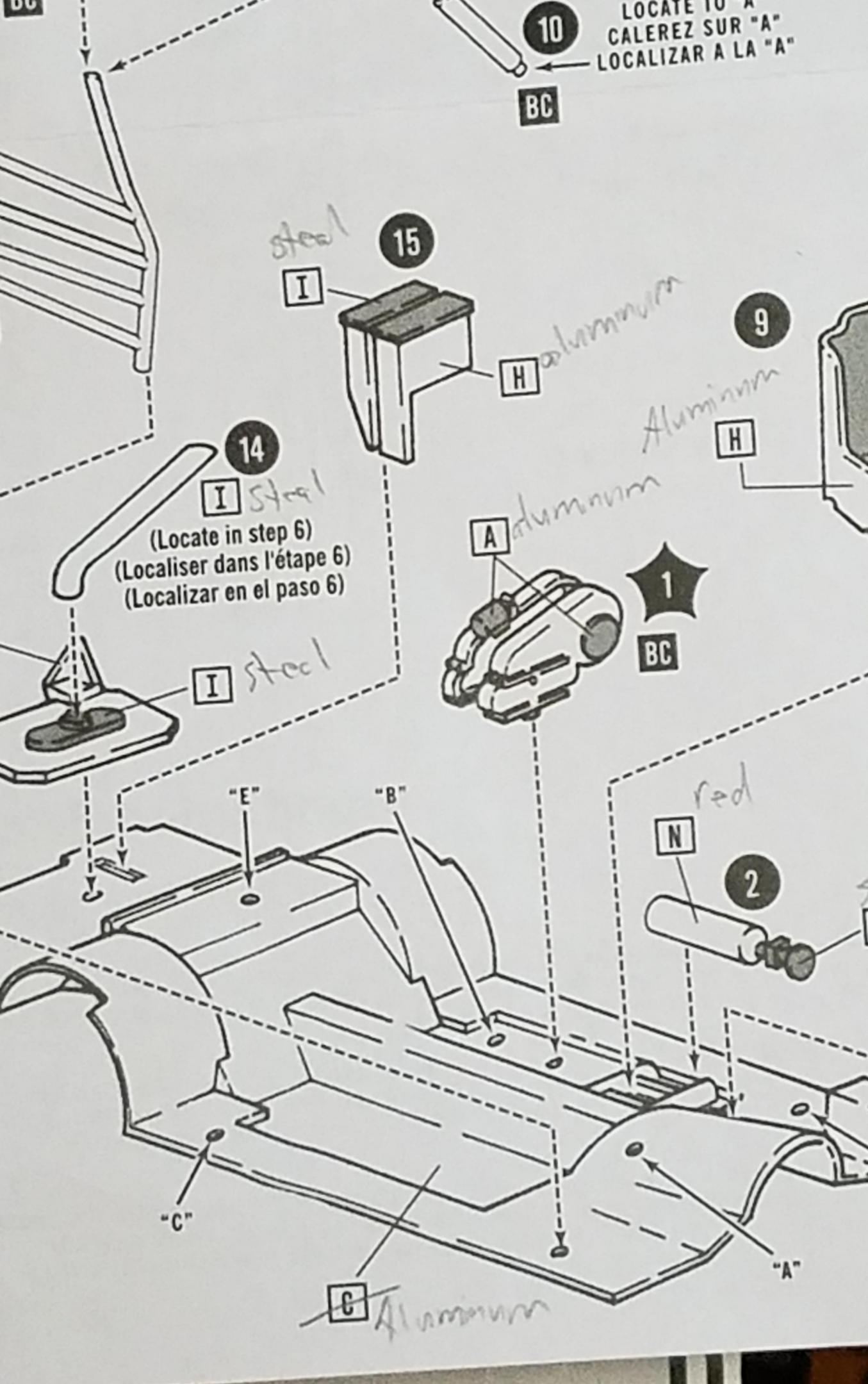 So I decided that I would torture myself and start the AMT Plymouth Valiant Scamp Short Track race car. Other than fitment being terrible, and placement being vague at times; I have no idea what #1 is in the photo below. The instructions call for it to be Body Color with black highlights (no idea why I wrote aluminum there). Does any one know what #1 is supposed to be? Some sort of cockpit cooling fan maybe?