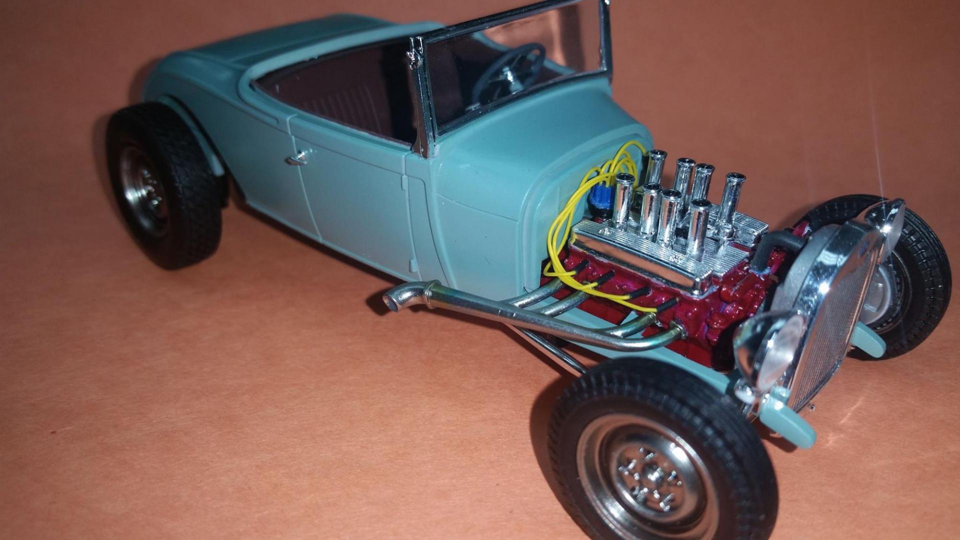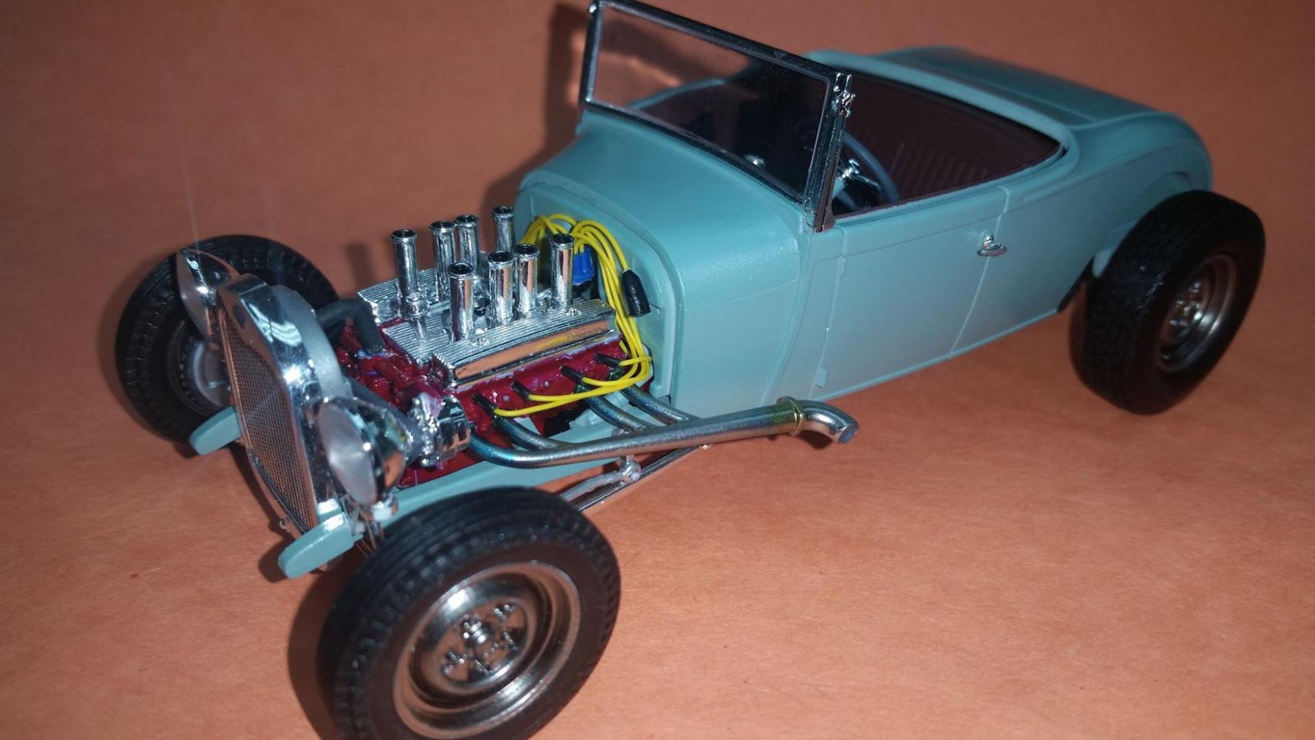 Just finished this up yesterday. Revell 29 High boy this time. Add MAD distributor and MSD box. Chopped the glass down about 4 scale inches. Changed the routing of the exhaust pipes coming off the headers to avoid the mechanical bind under the chassis. Done up in So-Cal colors for upcomng So-Cal model contest in Las Vegas.