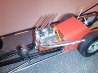 Finished this up back on the 29th of September. Enjoyed the build. Didn't care too much for the hokey exhaust so made a little modification by cutting off where the exhaust extentions ran under the cab. Stripped the chrome and re shot the headers with Tamiya X-1 black and then Alclad II chrome. Airbrushed a little clear yellow and blue on to give it a heat stained look. Added a MAD distributor and home made coil. Carefull with the fit of the radiator hoses too, the lower one dosen't quite fit around the belt drive as advertised. Next one of these I'm using aftermartket hose. Enjoy. Joe Porche