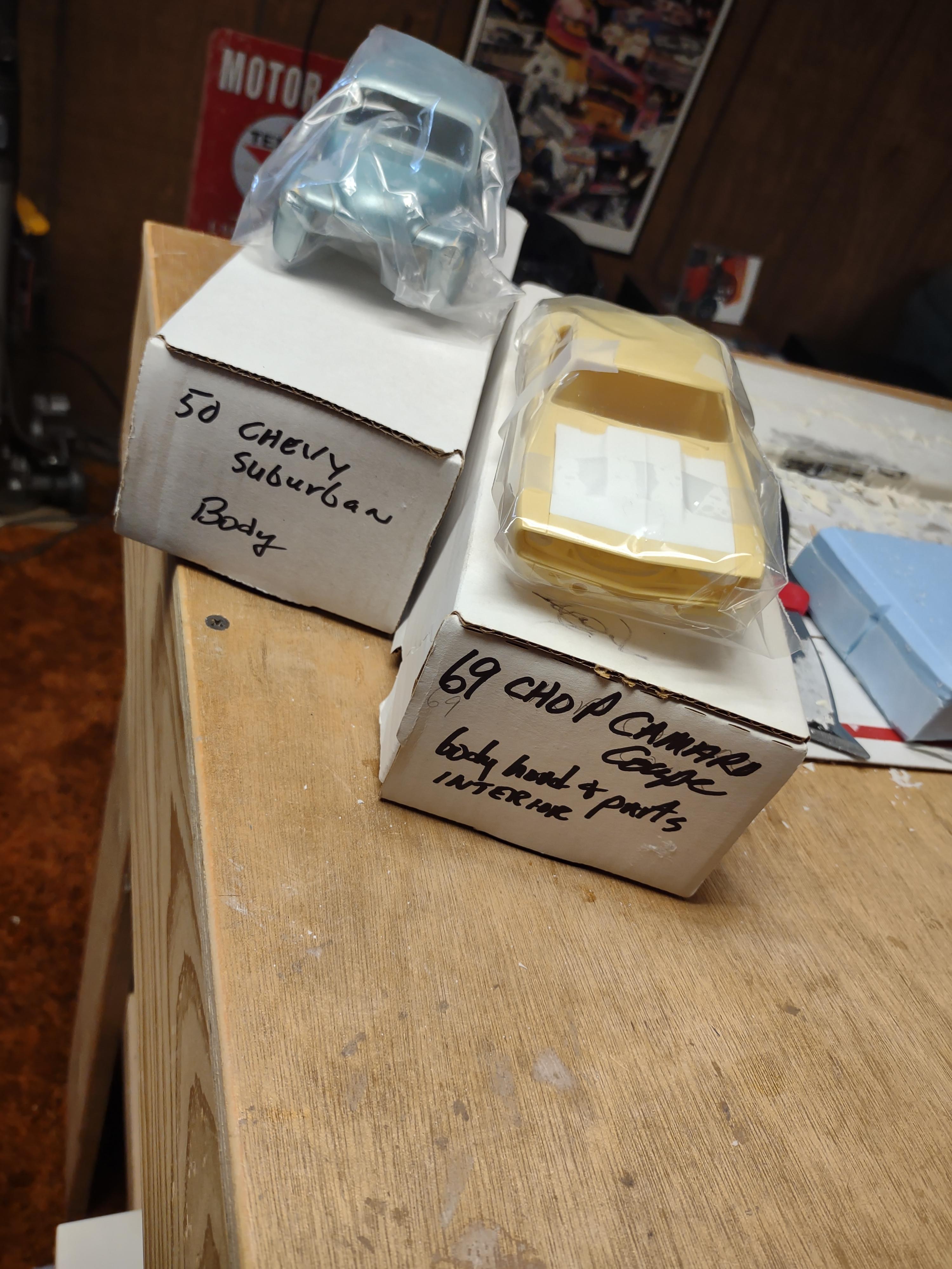 Got these yesterday, a '50 Chevy Suburban, '69 Camaro chopped and tubbed, two parts bags of '41 Chevy PU.