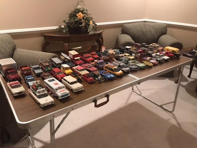 Just going by my Fotki albums, count around 60 finished models. There are also around 40 albums of work in progress.. aka “The Shelf of Doom”. I have been working towards finishing some of these, but there are vehicles there that never will be completed. I also have “The Olde Kustom Kollection” of significant old customs from the early days of modeling. I just put 30 of these into their own showcase, but there are many more.. probably double, so put this collection at 60 pieces. I also have better than 100 more displayable old built ups of old kits that may get complete build ups someday, but are cool in their own right so no sense in storing them away. I just invested $300 in new glass shelves for two of my three display cases to double their capacities. My third case has wood shelves and I’ll eventually do the same to it. -