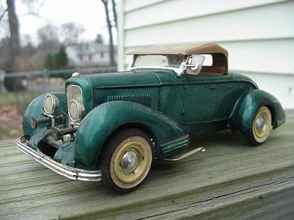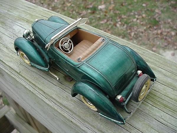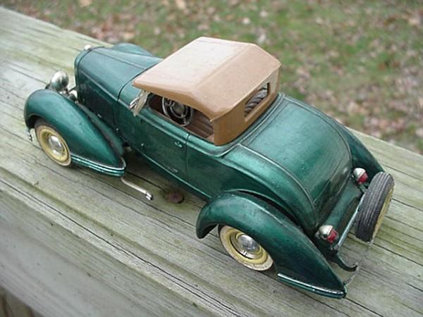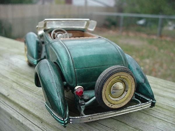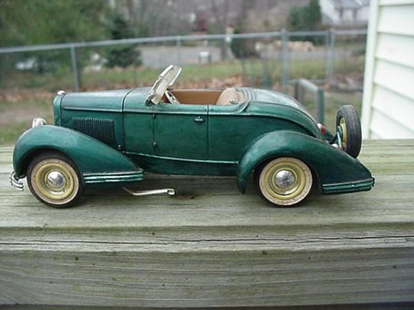 Here’s two old customs I own that were no doubt built back in the heyday of the early 1960s! This was the original issue of the Vicky. It’s survived well, and the coolest thing about it is that the original builder glued the body to the rear tires to act as a hinge. It has a metal axle and it works to allow the body to lift and lower. Gotta love kids engineering! One of my favorites that I call “The Duesy Duece”! Beyond cool!