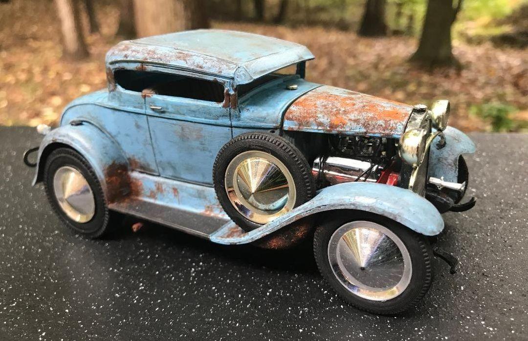 You don’t have to be an ancient fart to own or appreciate old survivor models from the heyday of modeling. I’m 62 and I own many models that were built way before I was able to hold a knife, because I’ve served them out as collectibles as the folk art of our youth! The pink one was built by me a long time ago but the other two date back to the original release of the kit using the provided custom parts. Both needed a lot of restoration but deserved it! Original 1962ish Monogram Model A. Some kid did the chop, I thought it deserved to be finished.. -