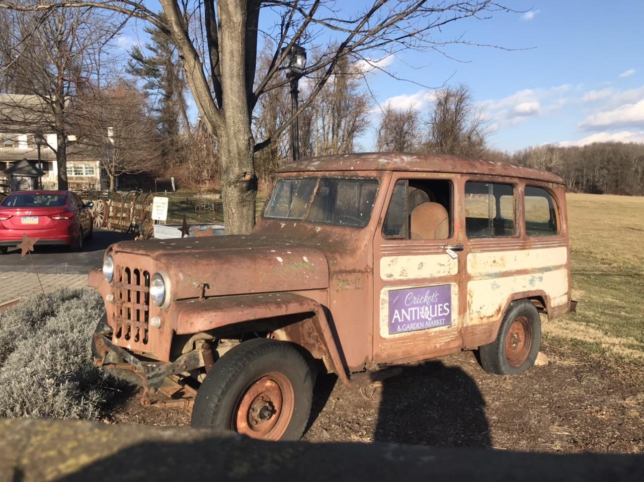 Wandering a country road on my way to take an old TV to the recycling center. I came across this neat old Willys wagon. It was the roadside attention getter for an antique shop. It had a tag on it marked “Not For Sale”, so you k ow it’s a constant question! -