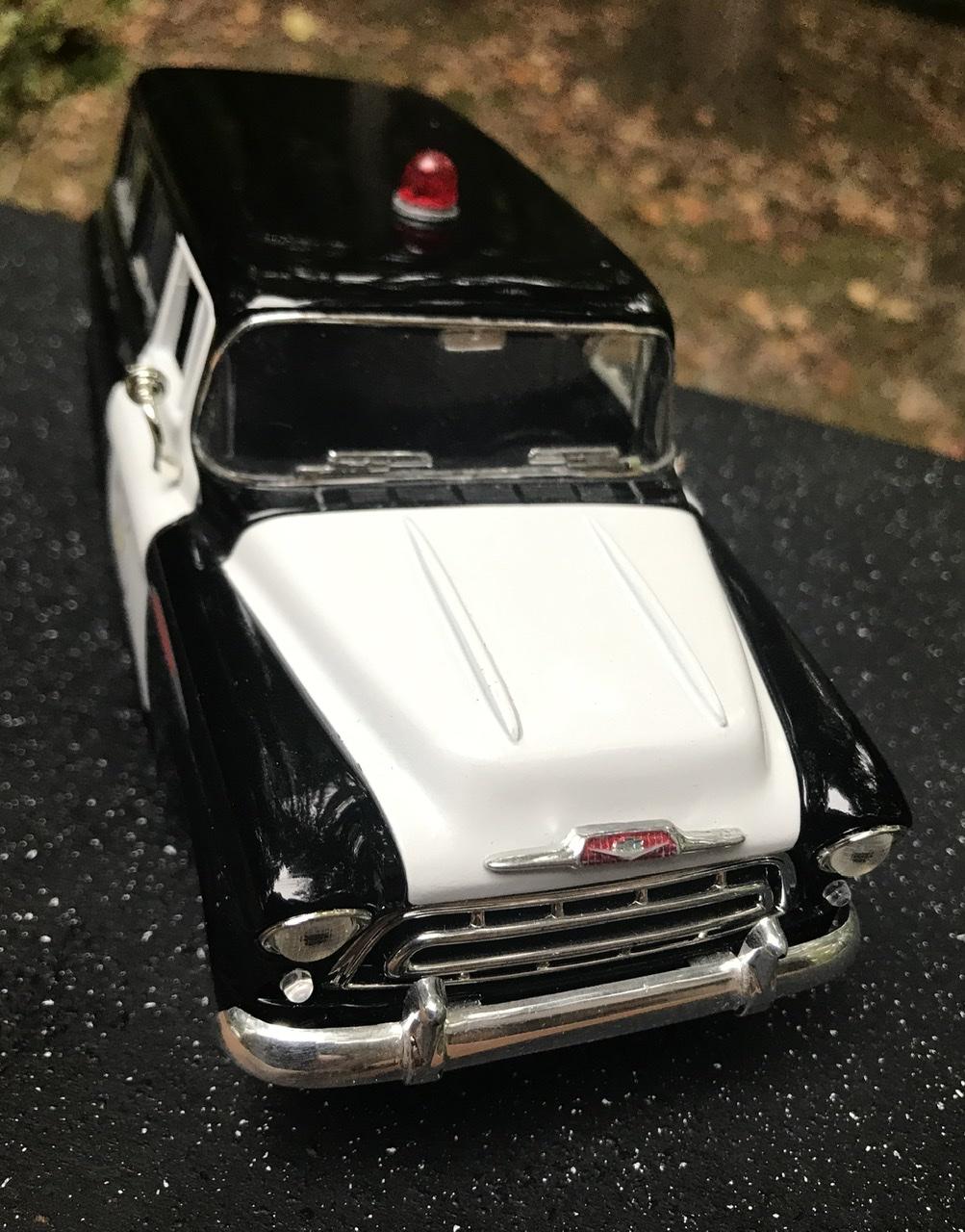 And here we are today. As this one sat in the case, every time I looked at it all I saw was the missing red light and hood ornament. So I spent a little time completing those details. Finished! A quick photo session and she’s back in the display case.