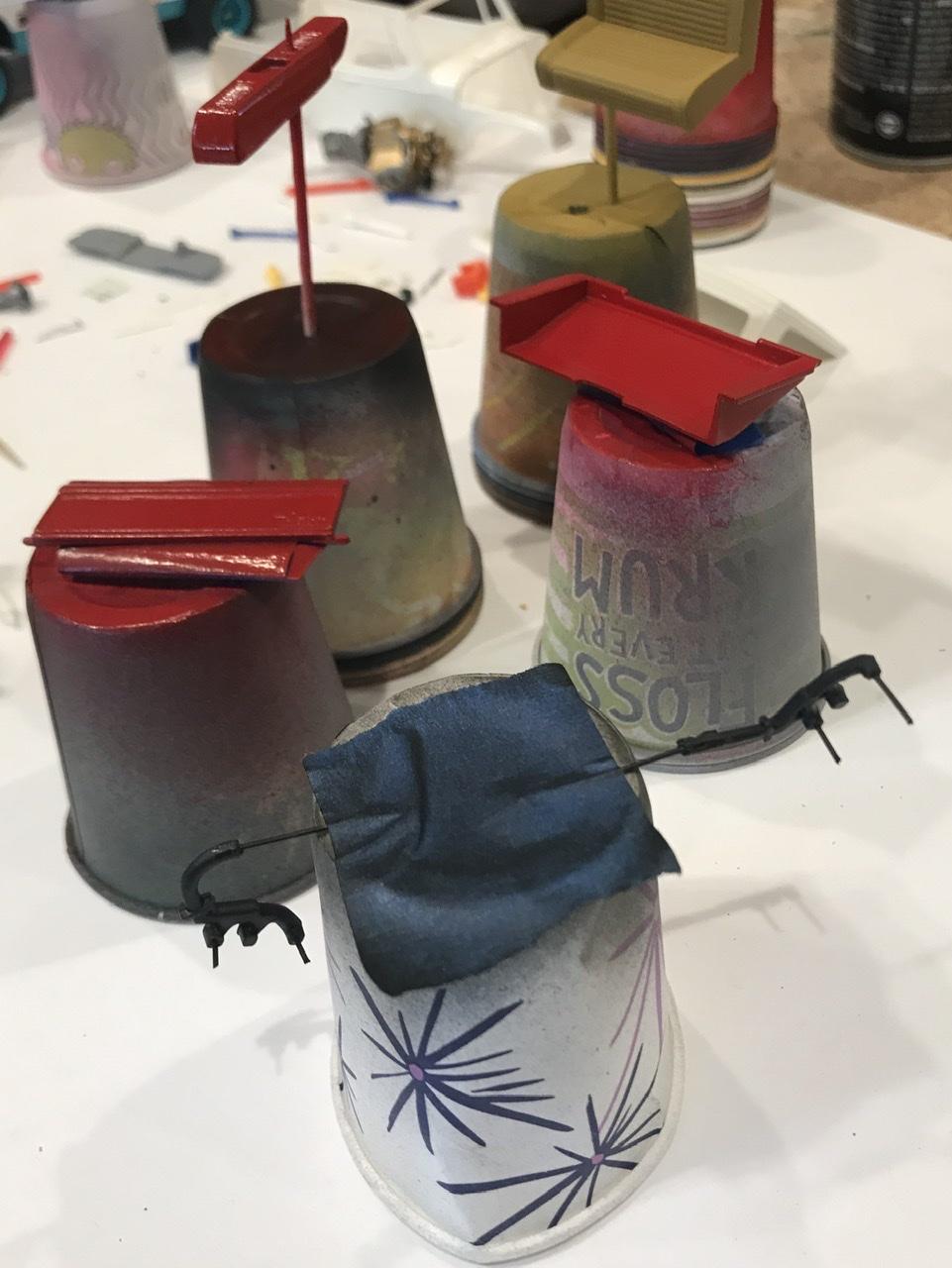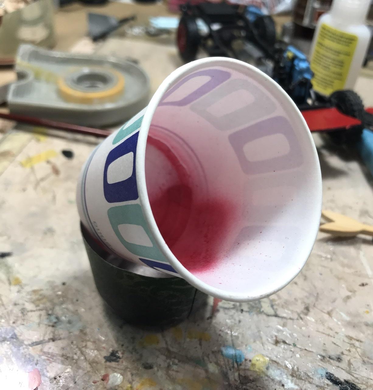 20. I spray a little paint into those little Dixie Bathroom cups. I get the box of a few hundred. They are very useful in the model room. Make sure you get the paper ones. The plastic ones melt and the wax coated ones cause issues too.