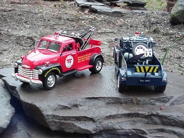 These have been around forever and a lot of them have been broken up to use the wrecker bed on models which works well since that part is plastic. The originals had stock wheels and tires, later ones had goofy wheels. It’s good to see they are back to the stock wheels. Here’s the pair I bought. Photo is dated 2003.