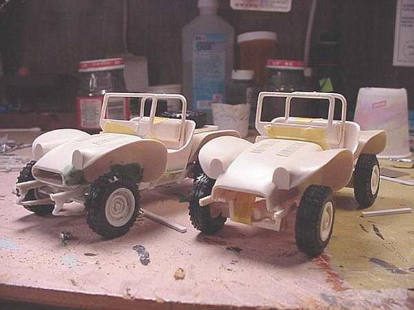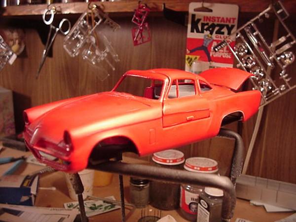 A few more.. Lindberg Trailblazer.. I have a Jeep chassis under it. Left one is stock Gull wing Studebaker... my first attempt at a major mashup some 30 years ago. It didn’t sit straight and the paint sucked. Was assembled at one point then taken back apart as above. Below is how it looks today VW project to match Sketch Pad drawing -
