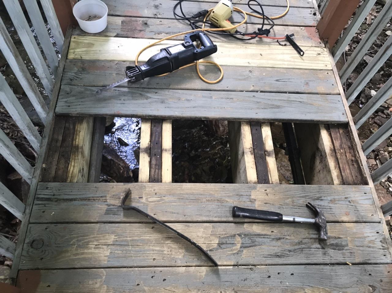 Bridge project continues just like a model project.. was gonna power wash and stain.. then started looking at it and saw a bunch of deck boards could use replacing. Not dangerous, just rotted at an end, so I’m 20 boards into it now!
