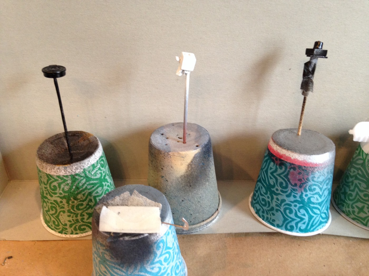 I use these small 3 ounce bathroom paper cups as paint stands. Parts on toothpicks. These cups were originally used to spray a bit of paint for brushing, and once done, they become paint stands until they wear out.