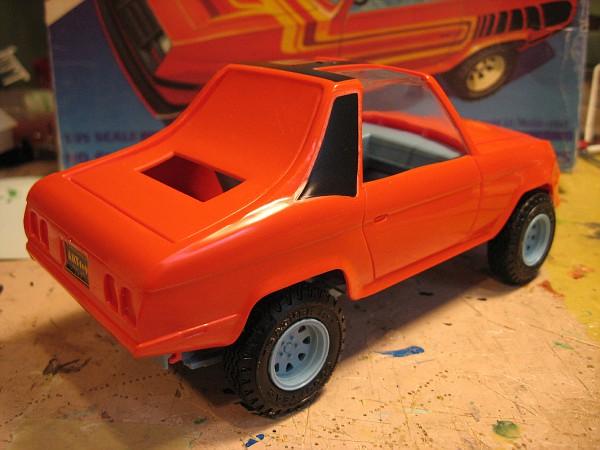 I have two of this kit and agree it does look like some sort of AMC concept vehicle but nobody could identify it when I asked same question years ago. Or MPC was just looking to put out a quick cheap snap kit without paying any royalties. I believe it was only issued once. I bought it to be part of my Jeep / dune buggy collection and was looking at building a detailed model out of it with a better interior and engine bay. The engine bay is a one piece insert like on a cheap diecast, interior has big flat parts lacking any real definition, and if I remember correctly, no inside door panels. I was toying with the Jeepster kit as the donor. The other thing that bothered me was the lack of rear window so I cut one into mine. The rear treatment that just was odd to me., My fix.. the first thing I did to it! Here’s an album I did with photos: https://public.fotki.com/ModelCitizen/model_cars/amt-top-1/