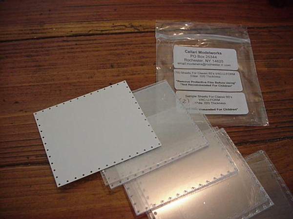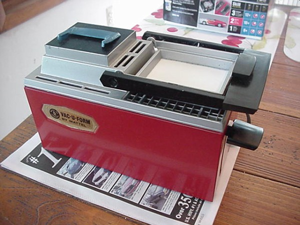 17. I own an original Mattel Vac-U-Form unit. As you can see, the largest item you can copy is a convertible boot, or maybe a hood. Here's my attempt at forming a windshield. I found I'd have to make 3-4 copies to get one that was usable. This is / was a company that made the perforated sheets used on the Vac-U-Form. I did get an order of sheets from them years ago. I don't know if they are still in business.