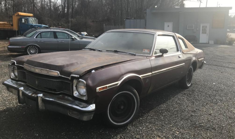 Here's two I saw in New Jersey over the weekend. I always liked the smaller Jeep Cherokee pickup. When was the last time you saw one? Although they had it sitting up on the platform, it had "not for sale" on the window. Below is a worn Dodge Aspen. Both sitting on the same defunct used car lot. -