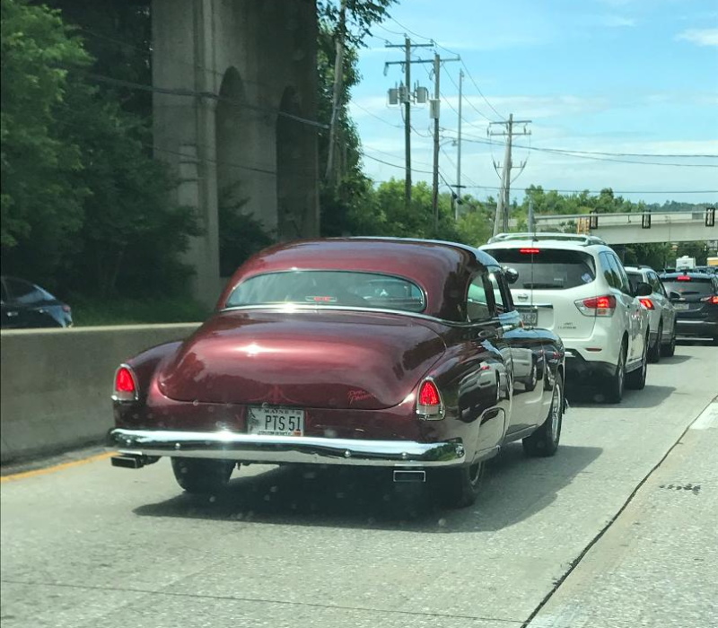 Nice weather here in the Philly 'burbs so the cars were out today! Neat early 60s Vette sitting at the light this morning.... Custom and chopped '51 Chevy this afternoon coming back home. Note it has 55 Chevy tail lights. The nose was fairly stock. Maine plates -