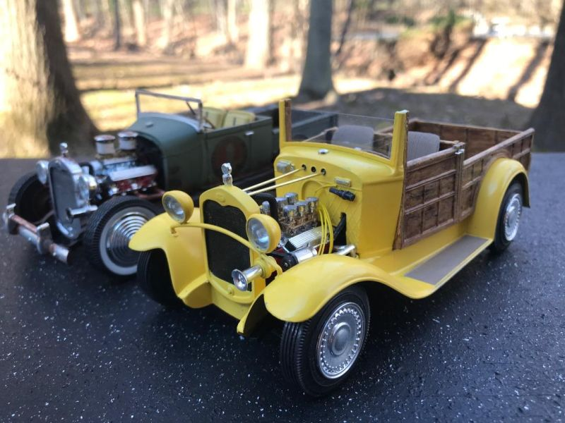 20. Nice! That looks like a Monogram Model A. I've had a thing for those lately! Did you paint the wheels? A couple of kits in that series are molded in yellow and I've noticed people had painted bodies and such, but wen't with the kit plastic color on the wheels. And it looks just fine!
