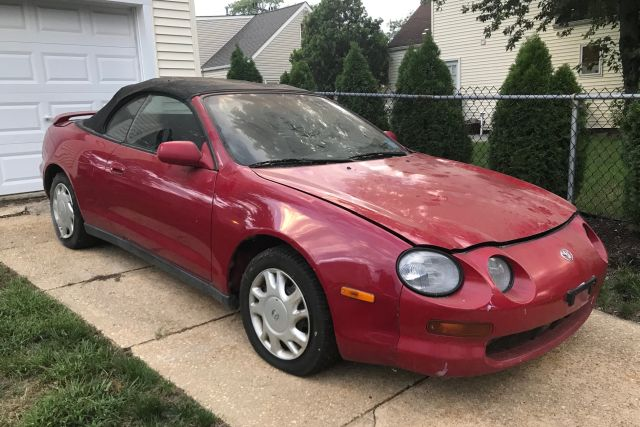 12. What pleased me this weekend... My Celica GT Convertible has been in storage in my NJ garage since 2012. Opened the hood, attached jumper cables to it and it started on the fifth crank! I pulled it out into the driveway. Seems to have a brake line leak, but otherwise good! Note the barn fresh dust on it.
