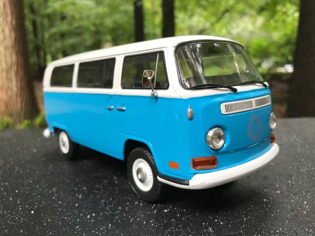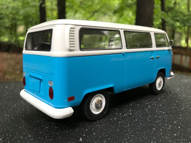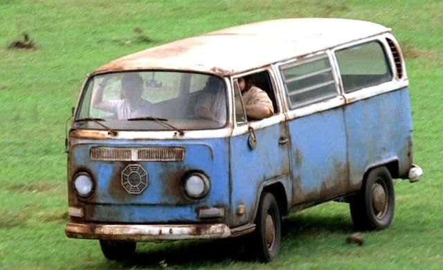 Since this has pretty much turned into a diecast thread, I bought this one yesterday at Hobby Lobby. Their price $29.99 minus the 40% coupon. Greenlight VW TV themed as Lost - Dharma Van. On the show Dharma had several of these in decent shape, below is a shot of the ones the Lost survivors found in the jungle and got to run. This one is missing the VW front emblem, and has a tampo Dharma logo. The other version HL had of this van was "Field of Dreams". That one came in two color schemes and had a dusty look to it. It had a roof rack with associated holes in the roof. No VW emblem on that one either, it has a front mounted spare tire. Greenlight calls it 1/24 scale and it does compare well to the later van, Revell's Van Camper.