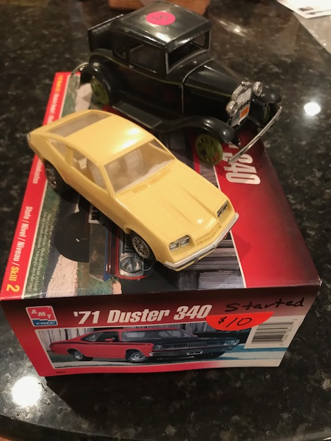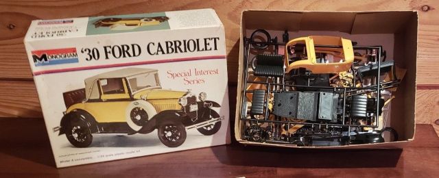 My week in models. I've been on a Monogram Model A binge lately. I grabbed this 30 Cabriolet from the 'bay for $15. It was listed as "parts kit - may not be complete". That was fine because I needed parts. Upon receiving it, I cannot find anything missing at all! I've used the stock 4 in a current project. This one will use the Chevy V8 from that project. I bought my friend, Tim Boyd's book! Everyone needs to do this. It arrived yesterday so I know what I'm doing in my spare time this weekend. The top photo is my score from the Super September Showdown last weekend. Spent a total of $20 at the show. The Duster has a partially brush painted body, but I wanted it for the chassis to use in an old Valiant build, so $10 was fine. The Monza is one of those Lindberg 1/32 scale 70s cars. I never pass one of those up for $5. I've been trying to collect that whole series. And yes, yet another Monogram Model A for $5. Brush painted but very nicely built. It does have the tires with it, so I'm going to just put it on the shelf until I need it for a project. Funny thing, another vendor had an old poorly built 1930 Ford Cabriolet that he wanted $25 for, I just chuckled that I had an unbuilt one in a box for much less!