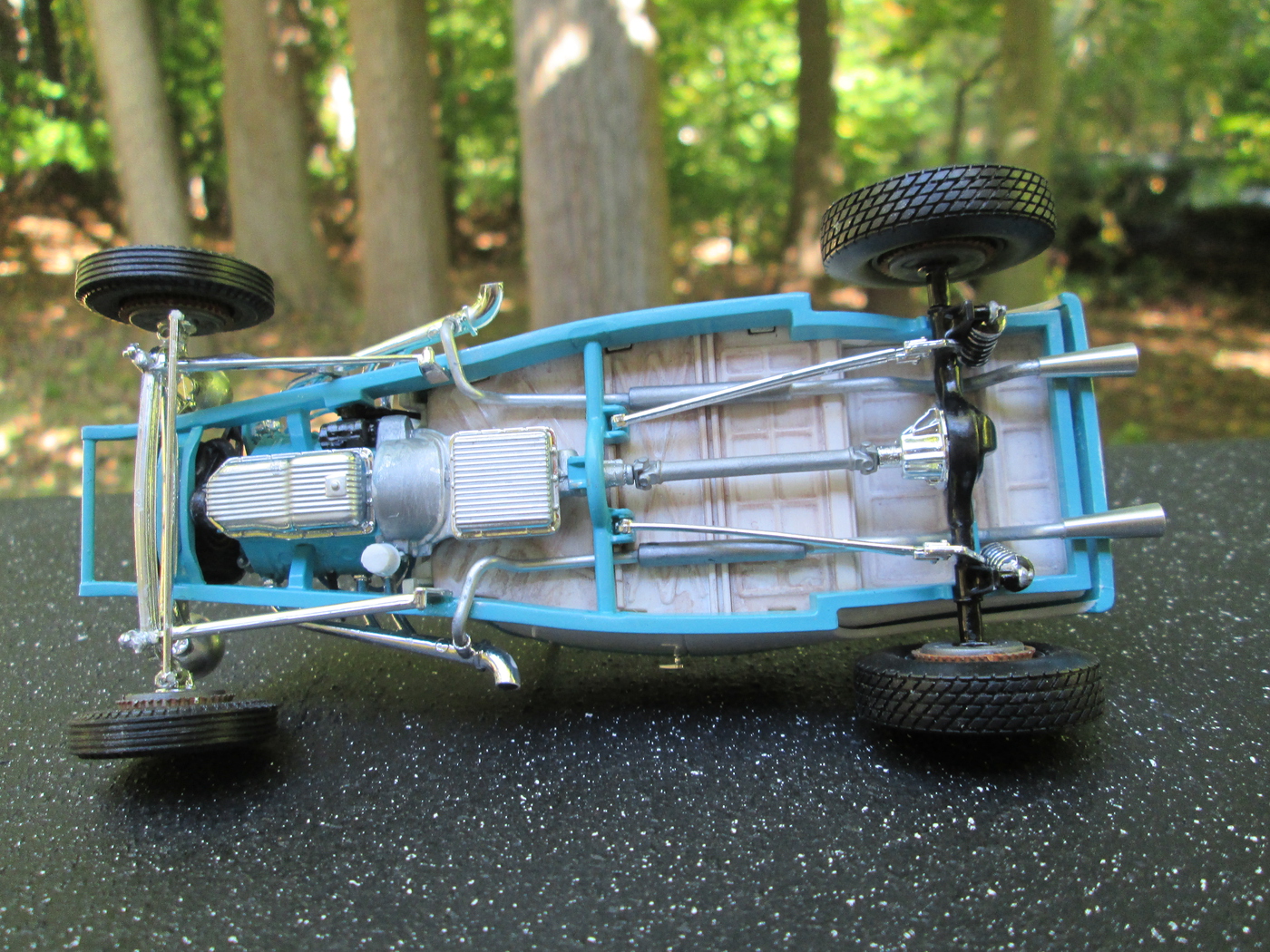 Since we're talking about this kit... for those who haven't built one yet, beware of the nubs where the interior side walls key into the floor pan. It should be covered by the chassis, but is visible. and not a Revell '29 but an example of the side valances.. this was an old Monogram built up, restored into a new build. -