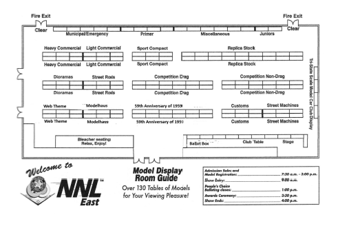The model display room is two full gymnasiums. This is an old photo. We now have tables the length of the room under the windows on the left. The vendors are in two other rooms the size of gyms. -