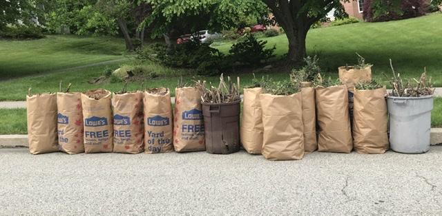 Yea! Today is Stick Day! The town came and took my bags and barrels of sticks and leaves! It was pleasant out the past few days as I cleaned up the property! I had a bunch of bags in the shed already from cleaning up the pool area a few weeks ago.