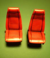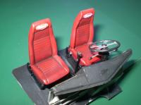 Another phase of the seats saga began. The decals. I cut them out and organised two separate groups for the left and right side. Just as the seats and frames. The decals represent textile fabrics. No reflection is desired. Therefore I sprayed all the seats with Humbrol´s matt varnish No. 49. The photo flash produced some glare anyway but the seats look okay in normal light. I glued them to their frames.