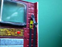 So, here is the weathered engine bay. I sprayed well diluted shades of brown and grey humbrol enamels over the red color as well as the AK Interactive enamels like streaking grime or fuel stains. This is a brake valve under the cab floor. A sort of... It won´t be much visible behind the grill. But it is there to fill the space under the cab. The surrounding panels are only brushed for the same reason. It won´t be visible. I had to clean this wall six times. For whatever reason I could not get rid of some debris. And when it finaly looked satisfactory, a silver finger print appeared on there. So... this is after the final cleaning. The stairway tower is in place for good. The aluminium strips are partly made of BMF and the rest is painted with GSI Alumine. Instead of time-table I framed in a truck scheme from the KFS decal sheet. I did not have the time-table. All for now. Thanks for looking.