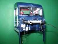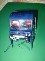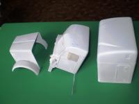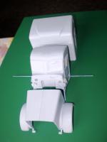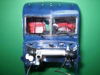 My attempt to create a fan in the cab is a failure. I have the fan but not the cover. I tried several times to make one but I gave up. Some interior pics: Using the ultra roof required some fitting effort but nothing too serious. The standard grill has 3 vertical bars. I have seen 7 bars grills as well. I made mine adding four more bars from the spare PE sheets. I won´t use the sleeper extensions. So, the appearance of the truck should be something like this: -