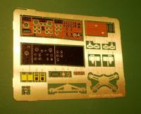 Hello everyone. The Long Hauler Pete is back. I left this project rest for a while and now I am kicking off with the other end of the truck. I was waiting for some items to arrive. Now the ultra roof and the coloured PE dashboard is on my work bench. So, there is no excusse for not carrying on. After spraying the London Bus interior I have some colour left. So, I used it for the Peterbilt interior as well. I got me these resin seats which I attached to the kit base. The seats will be a little higher which is very desirable for the box seats sit a bit too low in the Pete cab. The CTM released a new set of the photo-etched parts for the Italeri Peterbilt interiors. The set includes the coloured dashboard, two kinds of steering wheel spokes, the safety belts buckles and shifting pattern for the gear stick. The dashboard is georgeous. Not completely flawless, but surely the best that you can get. I took the pictures at night under my desk-lamp. It doesn´t do the justice for the CTM work of art. Check their offer to see the better pics. http://www.liaznavzdy.cz/nedtrans/pdf/04-2013.pdf -