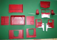 Okay, thank you Geoff for the info. This way or the other, my bus has the cover fitted already and I think I will leave it there. After a few weeks of thinking of the outside colour for the bus, I´ve chosen the RAL 3002 that is reportedly used by London Transport for local colour repairs. It is two-component colour used in 1:1 world. As such, it gives a much deeper shine, that it should be on a model. I will handle that later. I sprayed these first panels separately because I need them to: A- complete the engine bay B- fit the inside left-hand board of the lower deck to it I took the pictures in poor lighting conditions. We have heavy rains here these days. I will try to soften the shine a bit with filters and post-shading. The engine bay will be covered with some grime and dust.