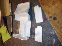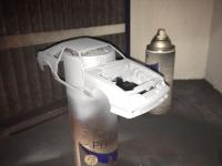 Ok so i know its hard to see on camera but that is a guide coat of gray primer and im slowly getting the body of this car smoother. other than workining on the body ive also been working on the rollcage im scracth building and the interior was warped so i had to cut off the trunck section and had to reaatch in so that it was correctly alingened, i dont have enough progress on this part of the build to bother with pictures yet. in adition i am making the interior tub and chasis apear as one piece no ugly seams. also i have puttied and snded the engine block and seats to cover up those nasty seams.