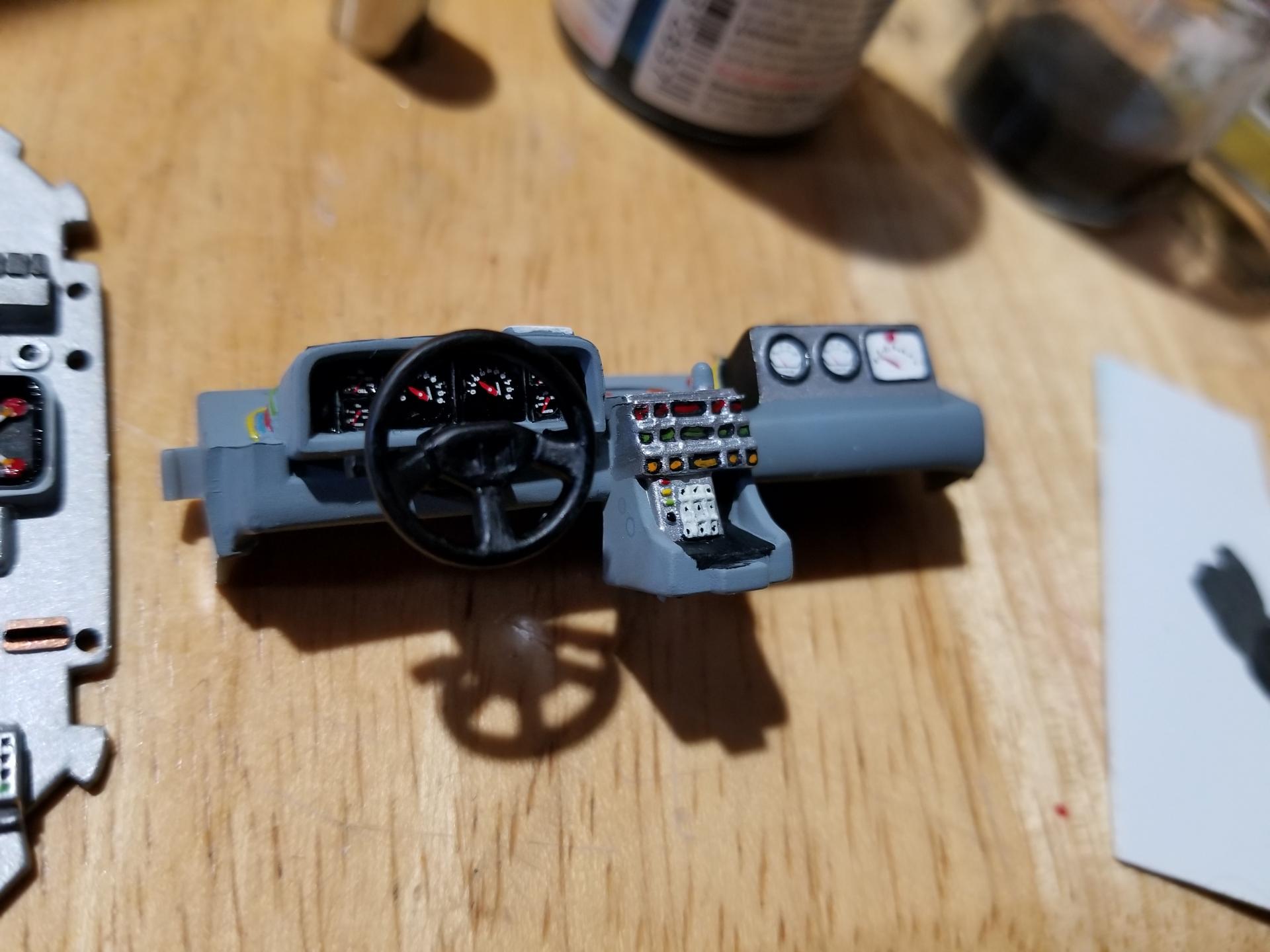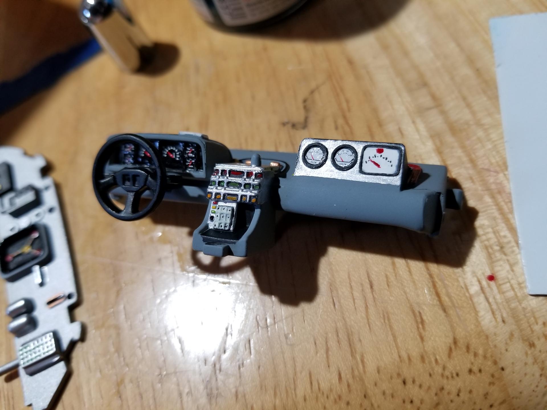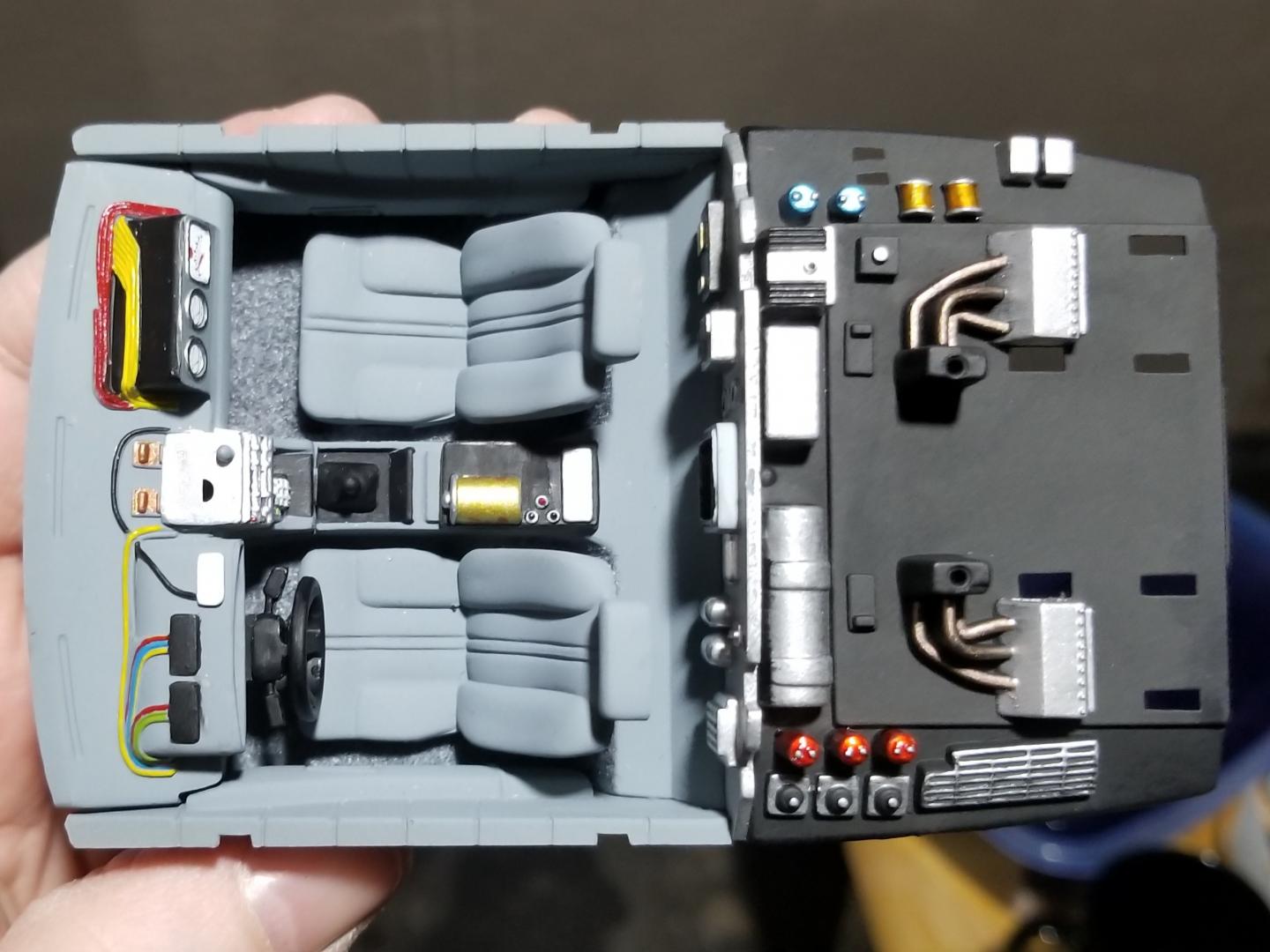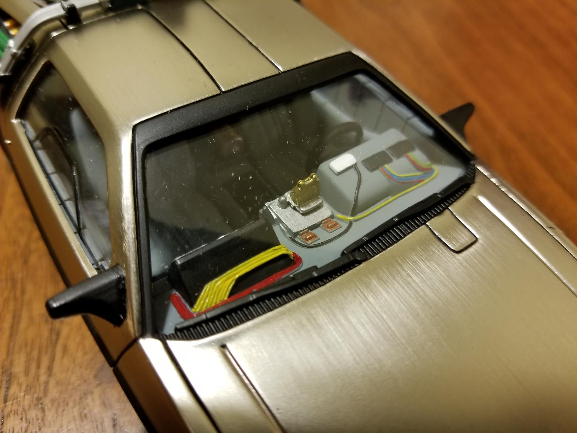 Finally finished this model I built for a friend of mine for a Christmas present. First model I have completed in over 15 years! It's a Polar Lights Back to the Future "Time Machine" but this one they included the "DMC" on the grille. It's a snap-together and it's one scale smaller than the AMT-ERTL/Aoshima kits with a lot less detail, but I made due. Here is some of the WIP pics to show the interior details and the completed car. The only details I added outside of the box-stock car was the gauges (the square gauge on the plutonium gauge cluster is hand-painted), Ken's Kustom Fuzzi Fur carpet flocking, the braided wire on the lightning rod and the thin wire I wrapped around to hold it in place, and the "GoodYear Eagle GT" decals I got from Joseph (Fireball Modelworks). The decals alone transformed the car and gave a much more accurate look. I also couldnt stand the chrome plated wheels, so I stripped and painted them with flat aluminum, then detailed the center caps and lug nuts. Anyway, without further ramblings, the DeLorean...