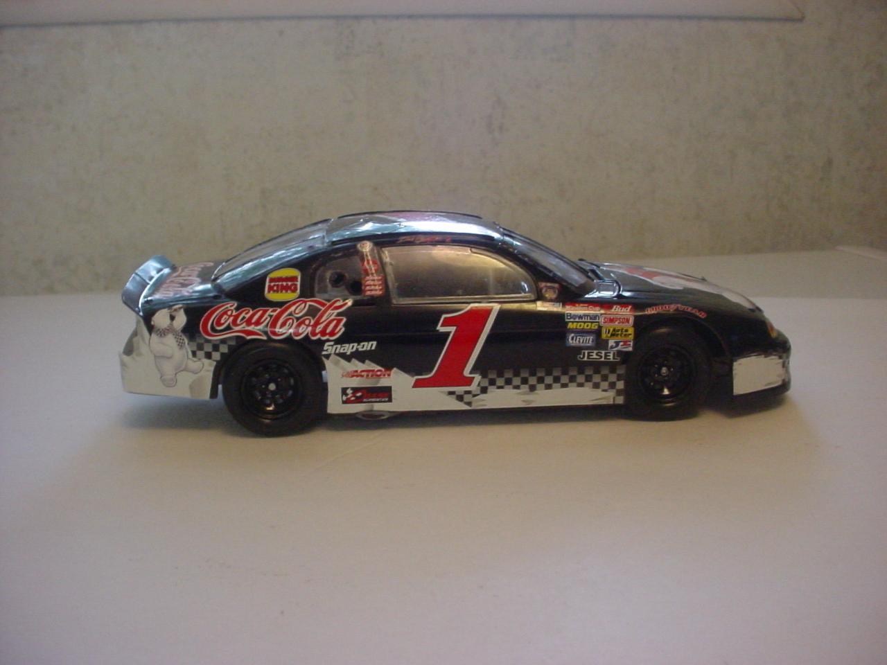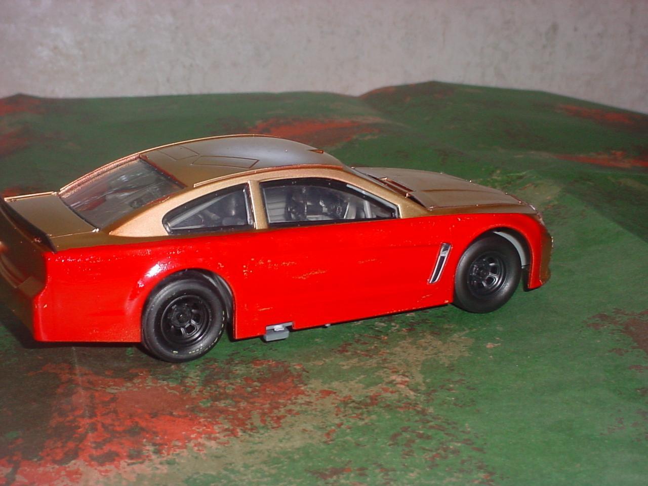 Inspired by Nascars recent throwback race. The blue is not correct, and the white stripes were hand painted, Knowing how Petty like the mopars I used a AMT '09 Dodge Challenger and the wheels tires and axle's from a snap Jimmy Johnson Impala also made by amt.