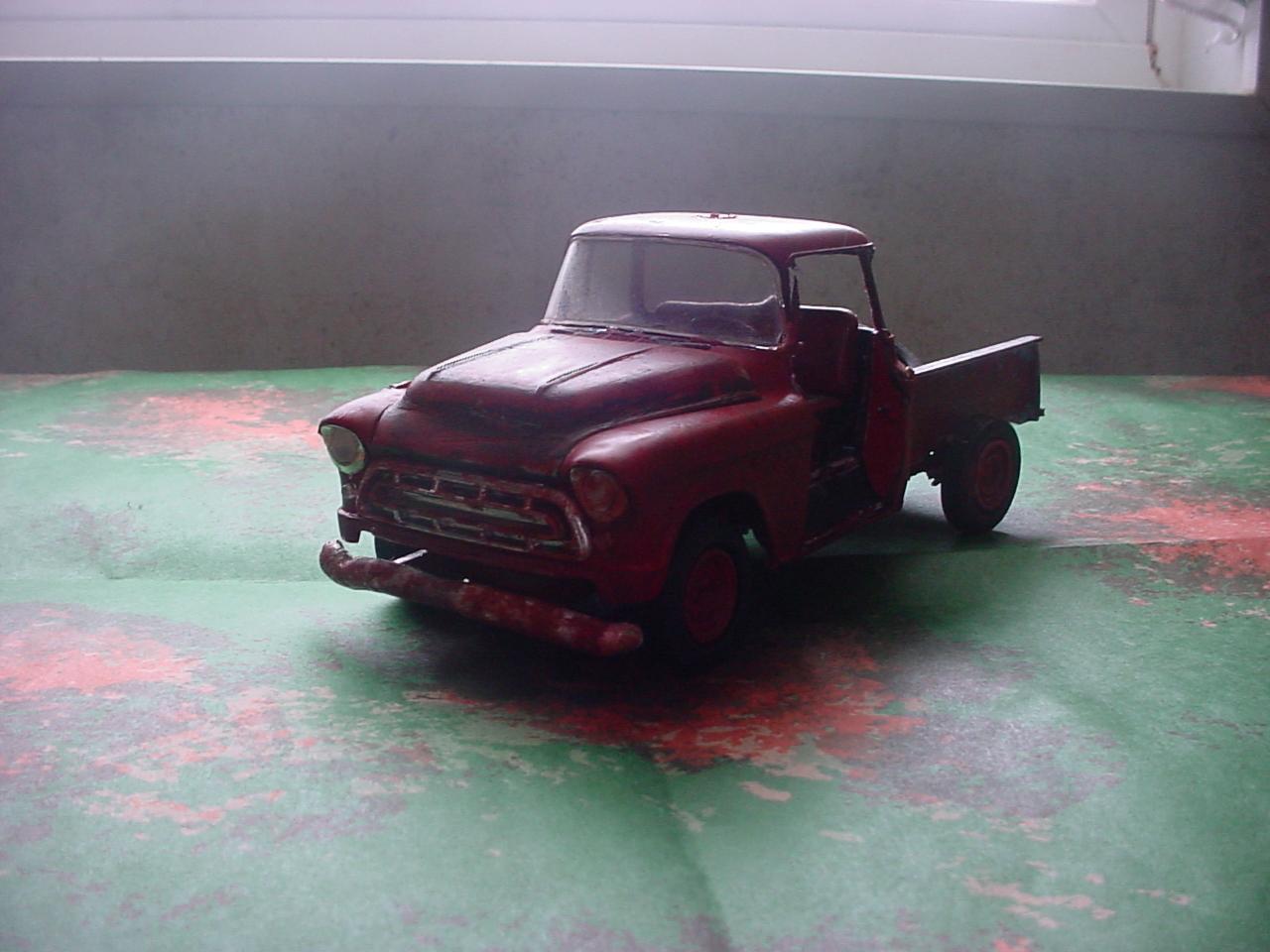 Not quite finished yet, But it is based on one that the farmer that Farmed the land around our house back in the 1970's He bought a new chevy pickup in 74. I added the side trim to the body. The spare tire is where he had his mounted on his 66 C-10.