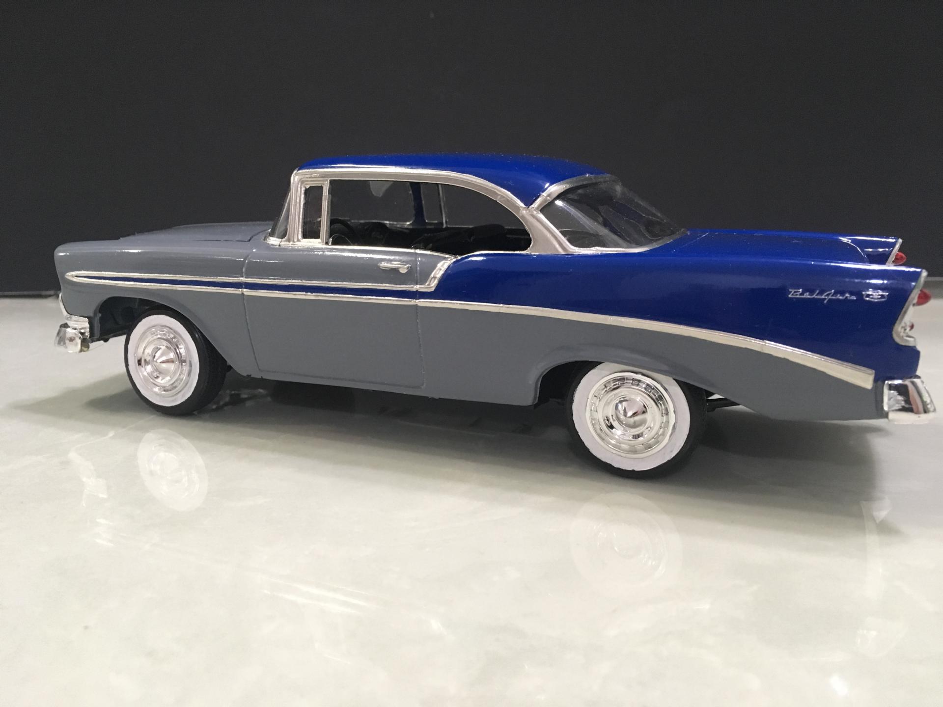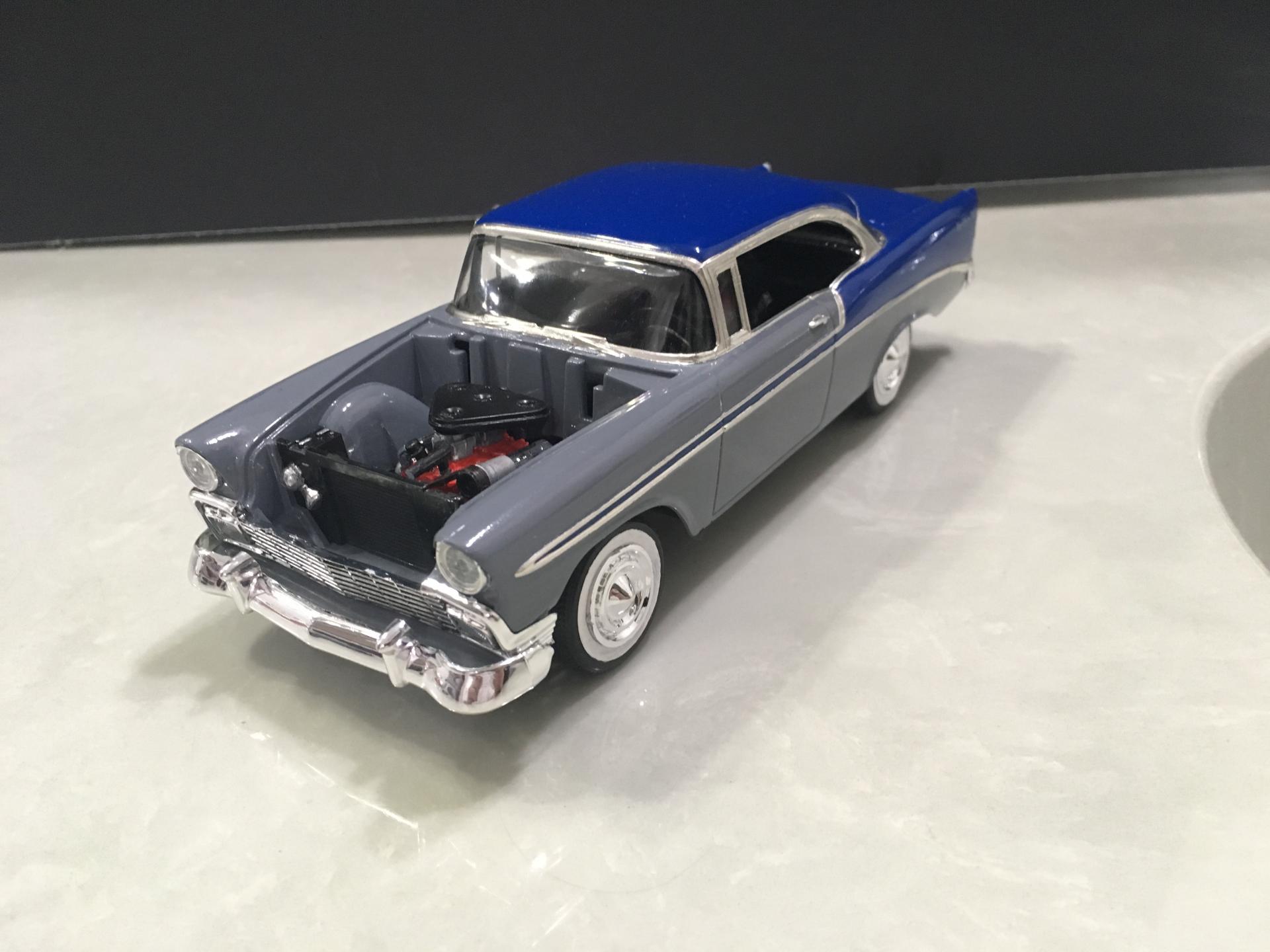 56 Bel-Air. My first two tone. Testors Enamel. Need to get the plates and misplaced the dang hood ornament! Lol “They’re never quite finished, even when they are!” Thanks for looking. John