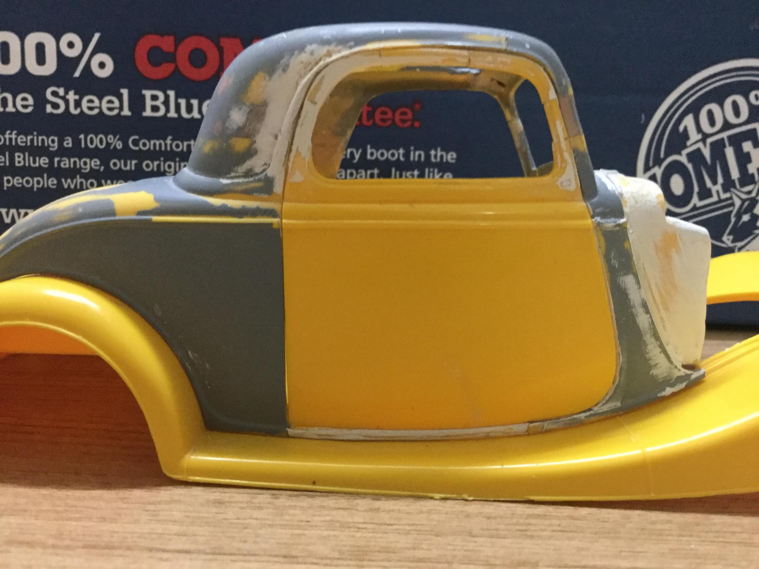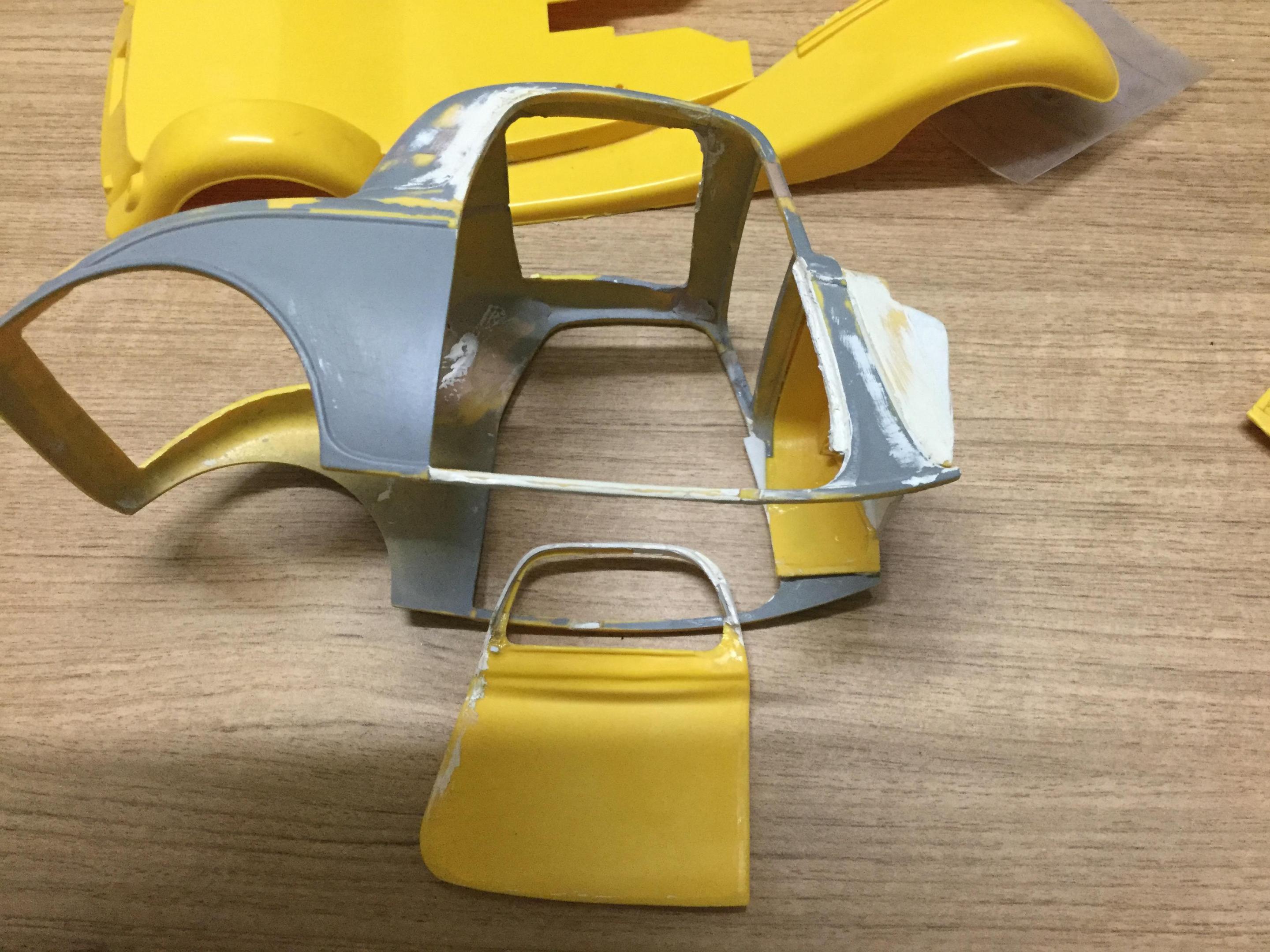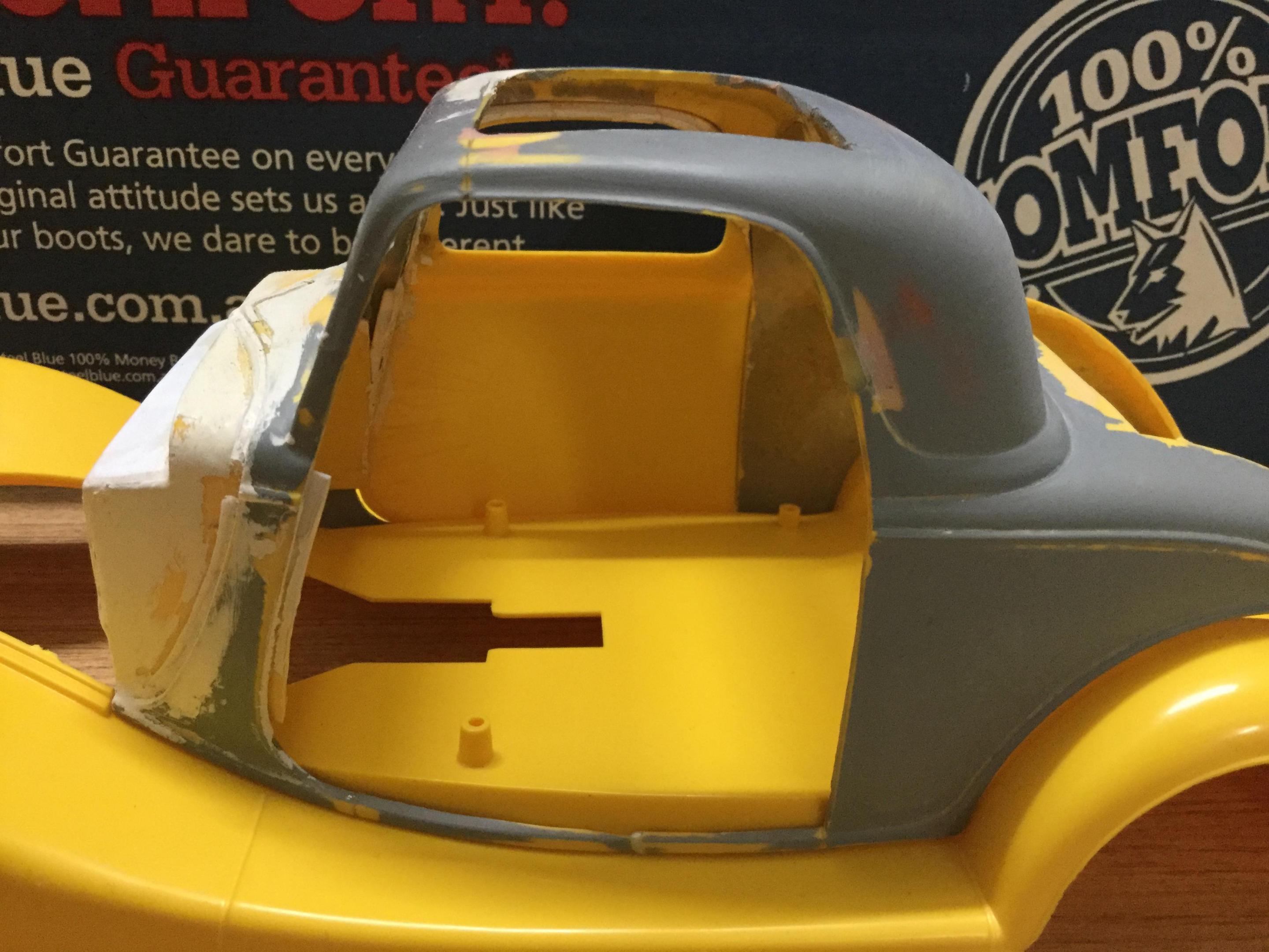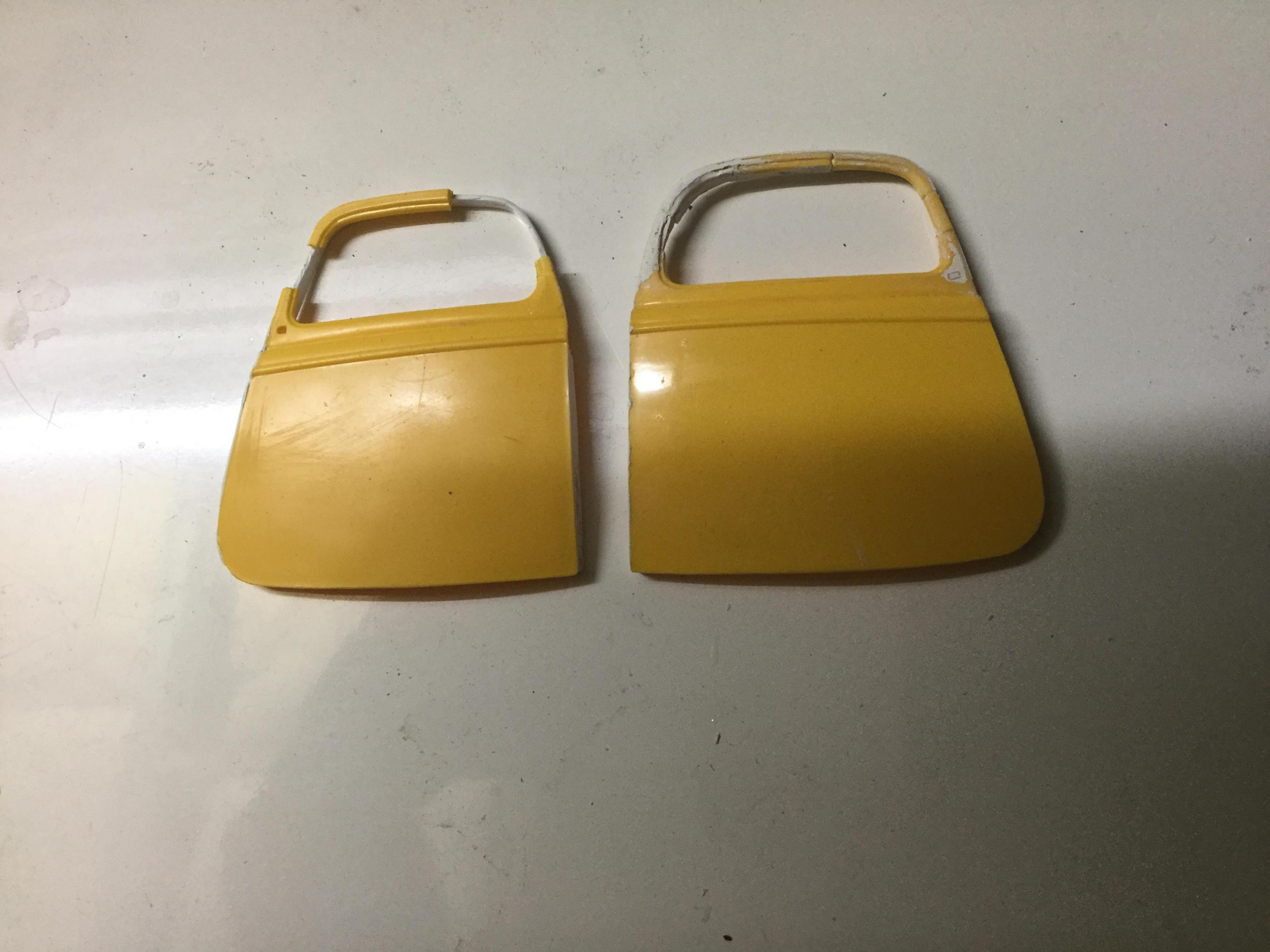 As far as the door frames go, they will need a lot of reworking to end up matching each other. I was not happy with the severe rake on the b pillars so I re-did the passenger side of the body and door. At first I was happy with how the door frame was looking until I looked at the other one. I then realised I had carved too much of the shape away in the re-contouring that no amount of putty will fix. I have decided to finish the other frame and get a template from it to re-do the first one in new styrene. That will be the next task.