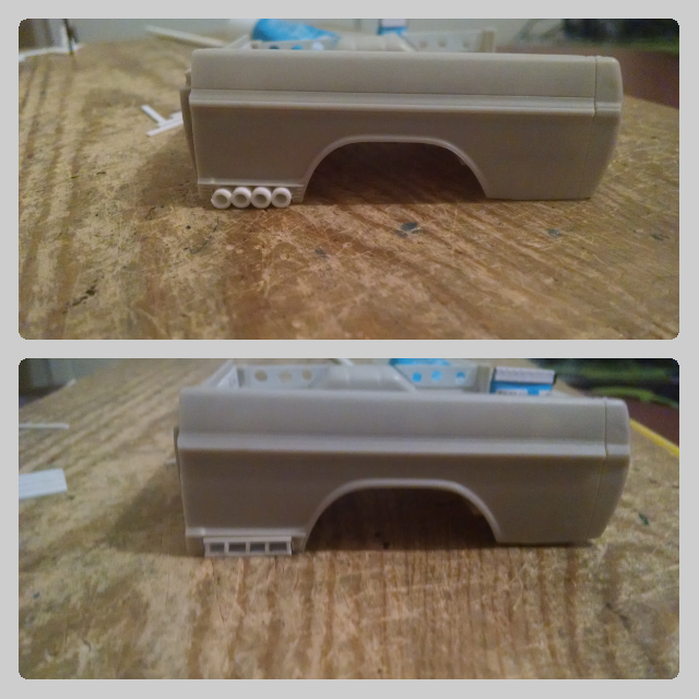 the back glass is a decal from the revell f250, the newer one that has the brown and white one on the box if i remember right. i've not done decals in some years so it was kind of a pain but i just kinda outlined it and then put in right on the "glass"